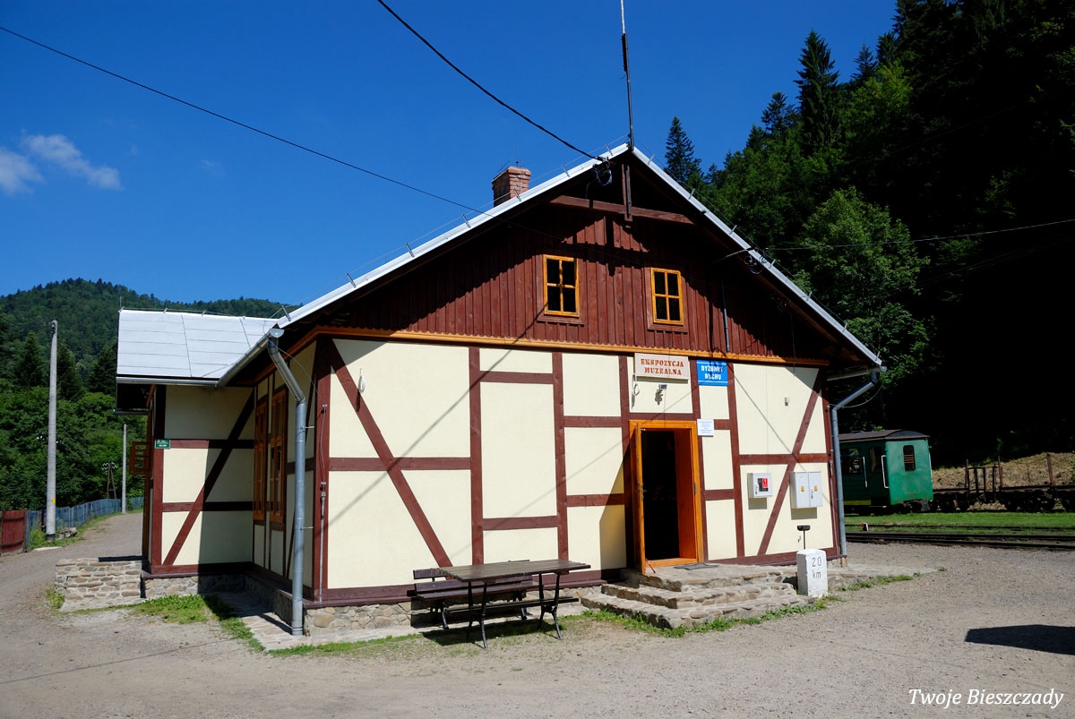 Bieszczadzka Kolejka Leśna, Rzepedź, od lewej: dawny ZIL, stacja kolejki, parowozownia, 2010 (foto: P. Szechyński)