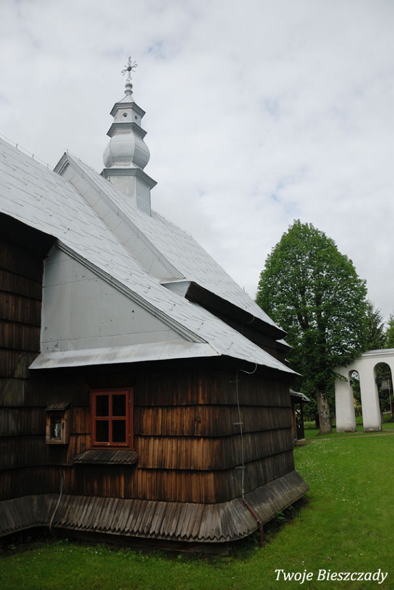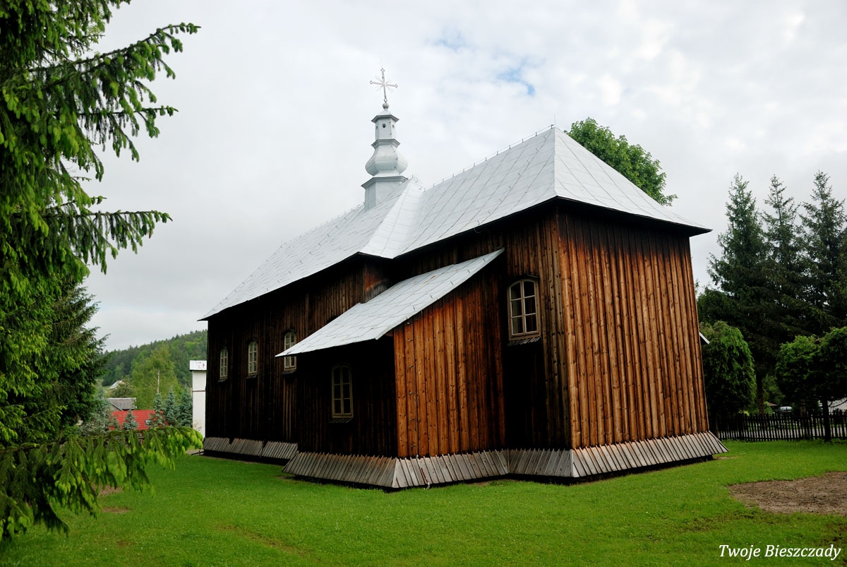 Łodyna, dawna drewniana, filialna cerkiew greckokatolicka, p.w. św. Michała Archanioła z 1862r., obecnie kościół, 2020 (foto: P. Szechyński)