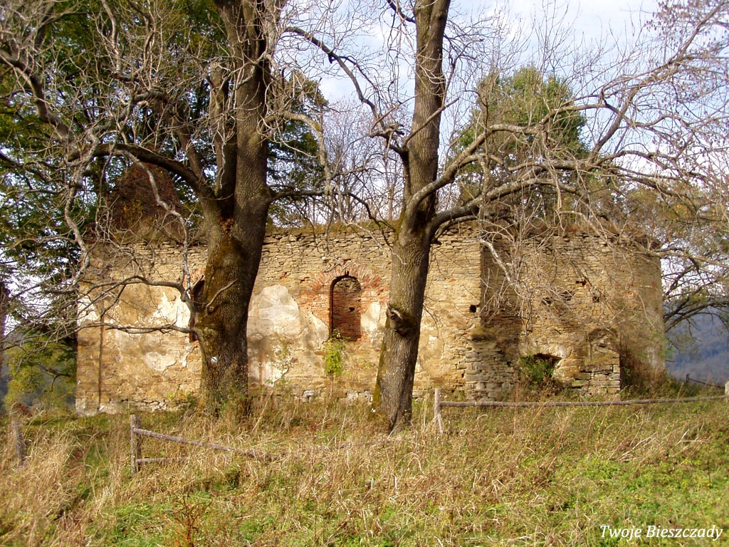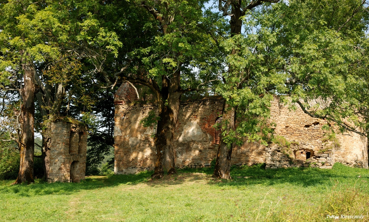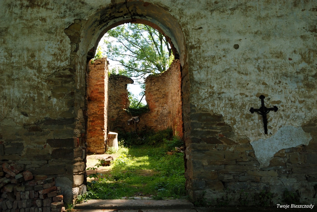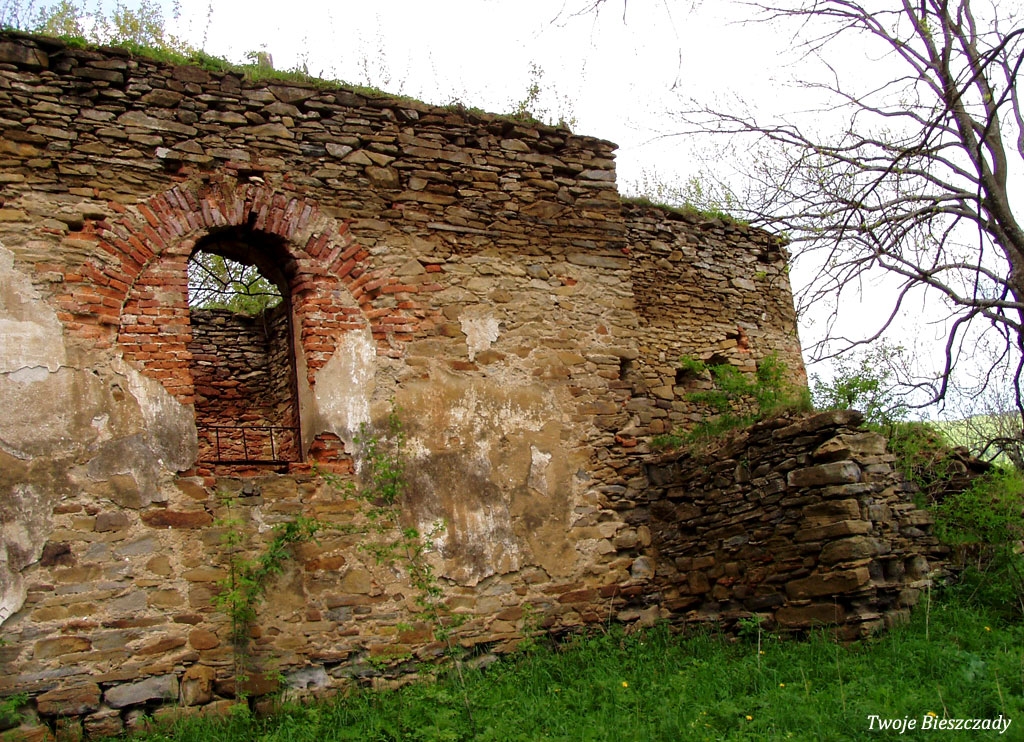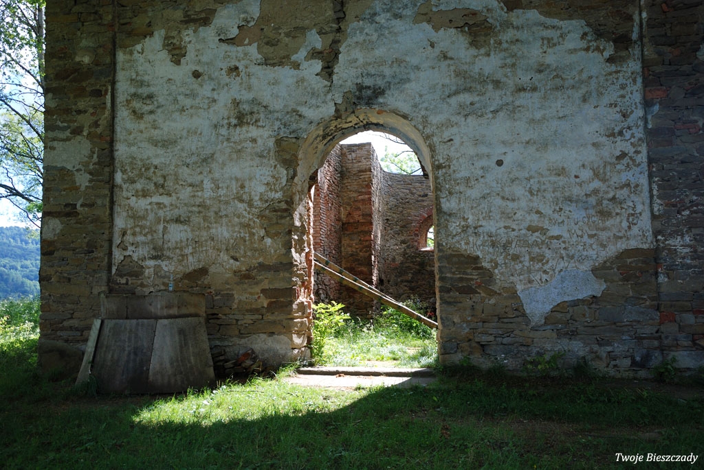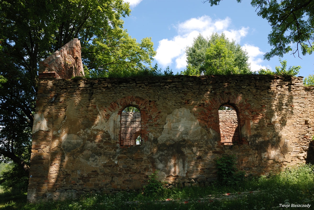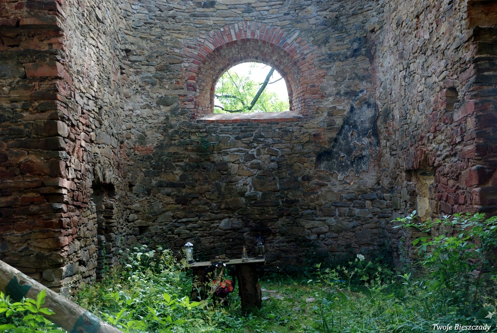Krywe, cerkiew greckokatolicka pw. św. Paraskiewii z 1842 roku, obecnie w ruinie, 2013 (foto: P. Szechyński)