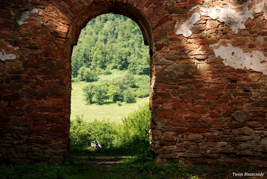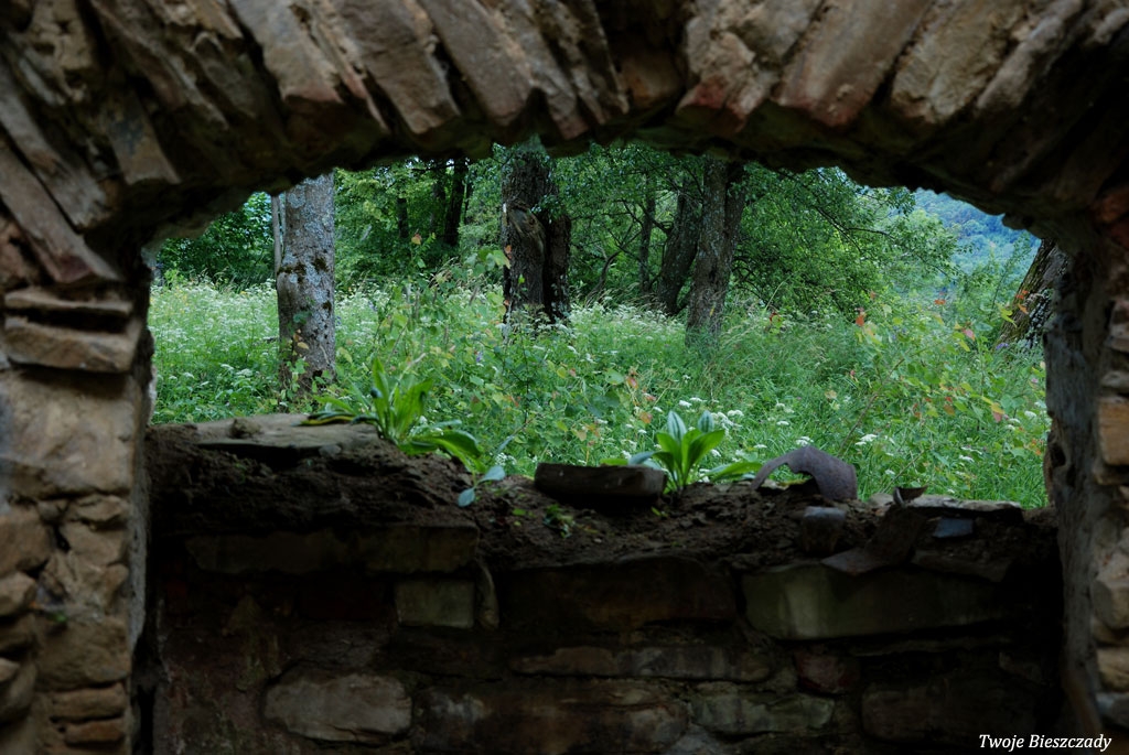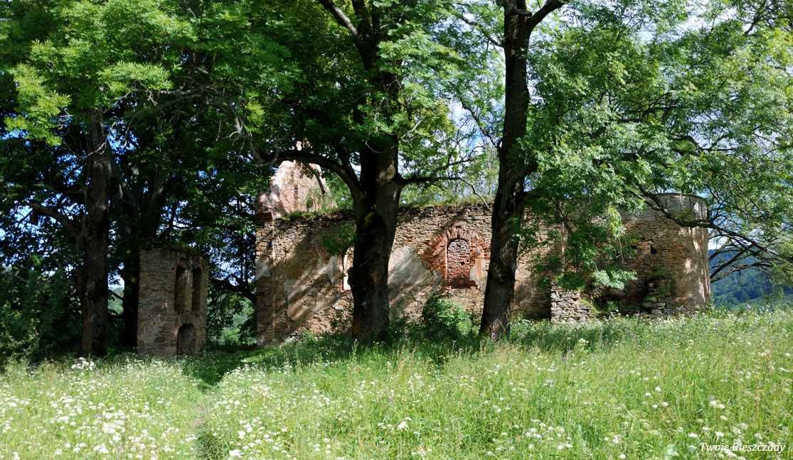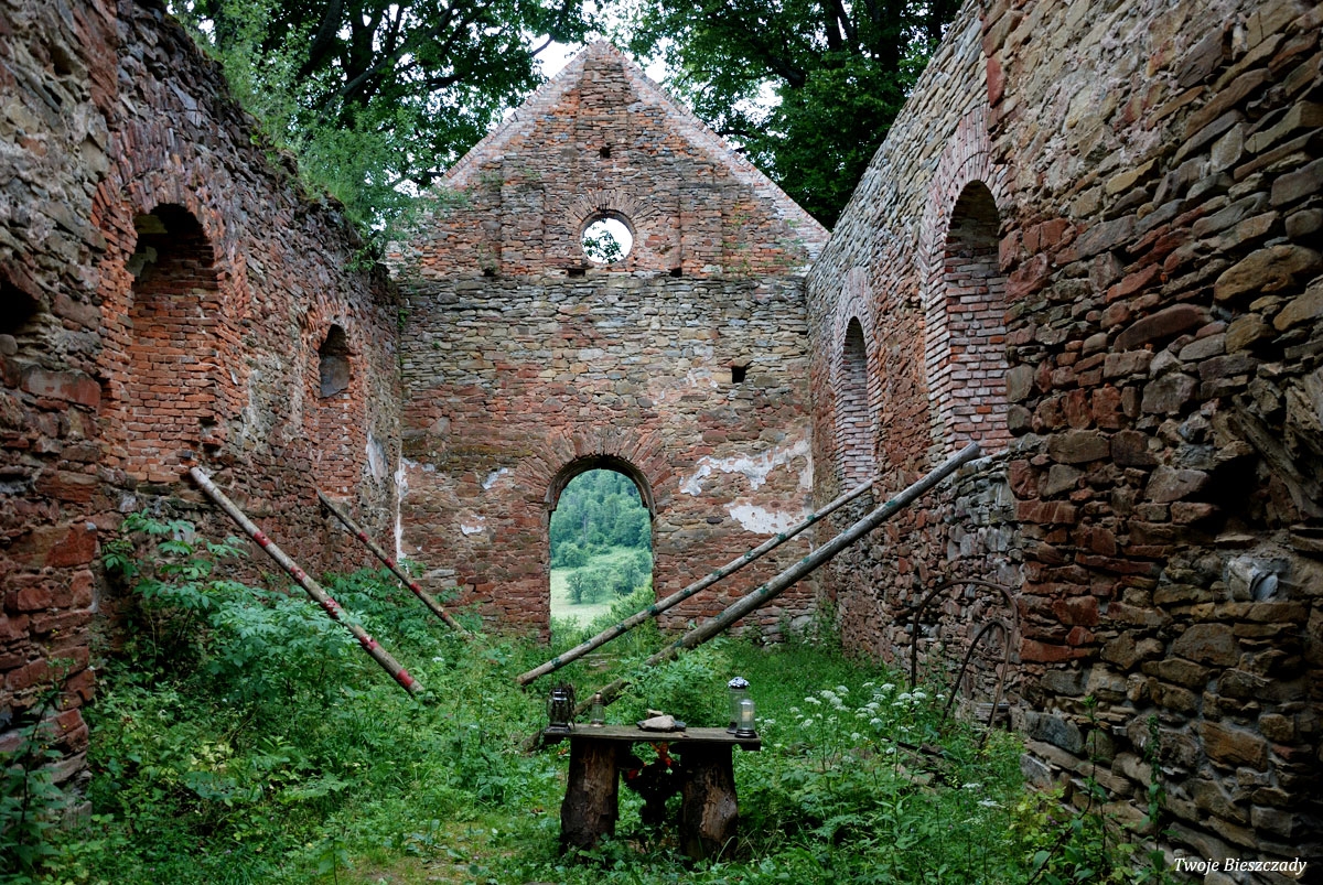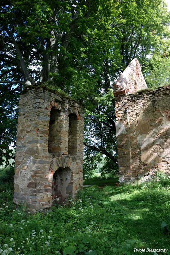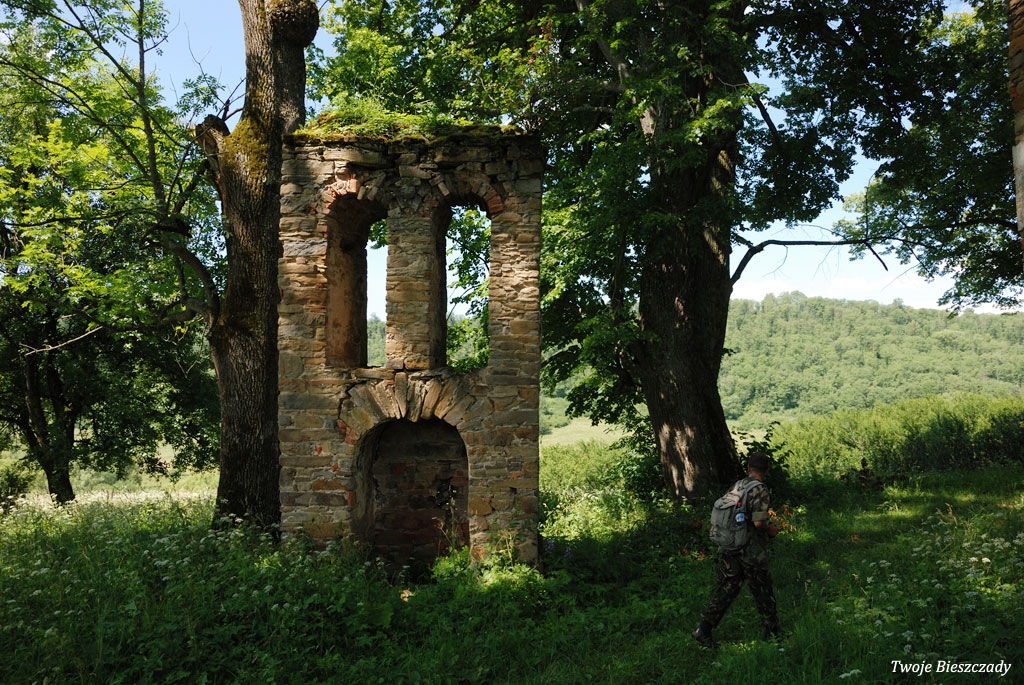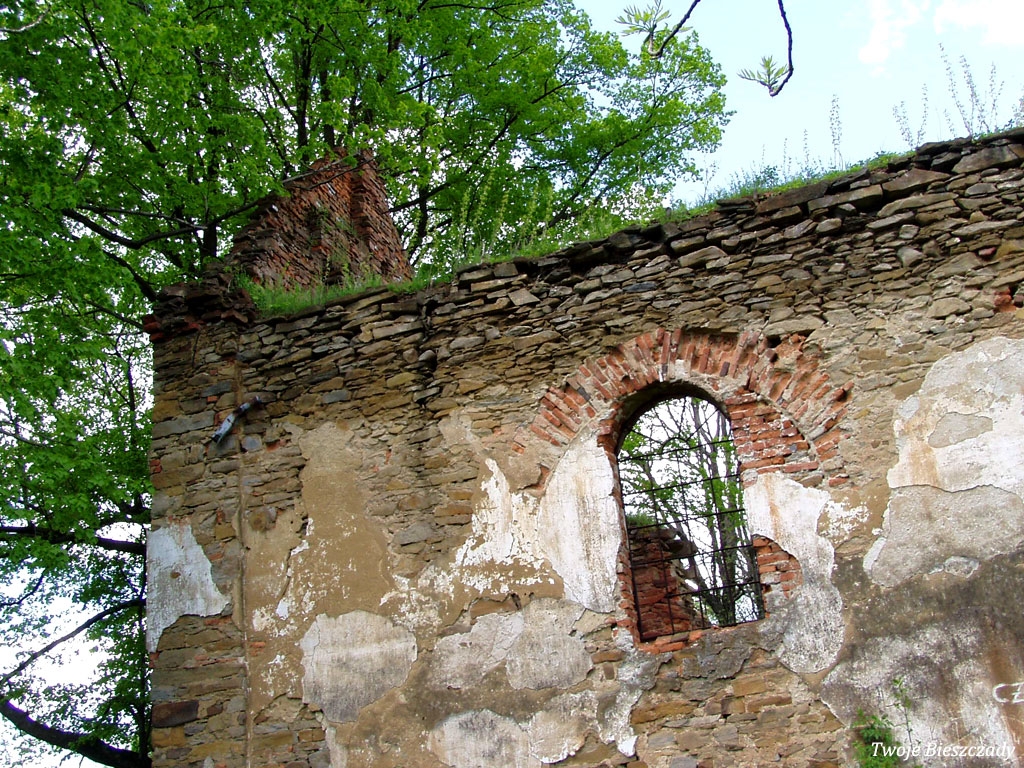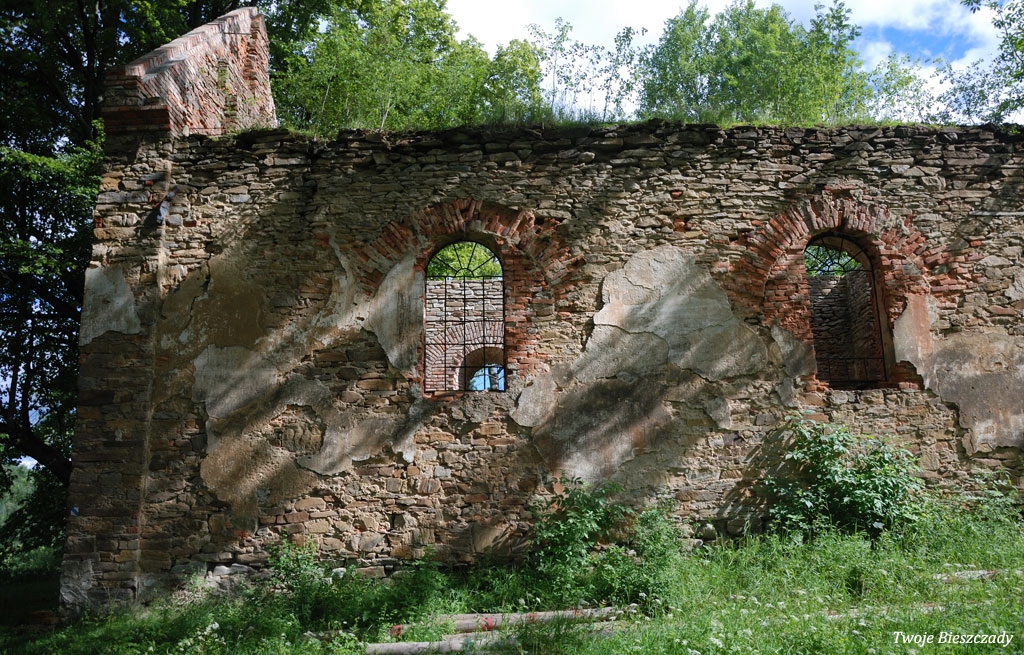 Krywe, cerkiew greckokatolicka pw. św. Paraskiewii z 1842 roku, obecnie w ruinie, 2013 (foto: P. Szechyński)