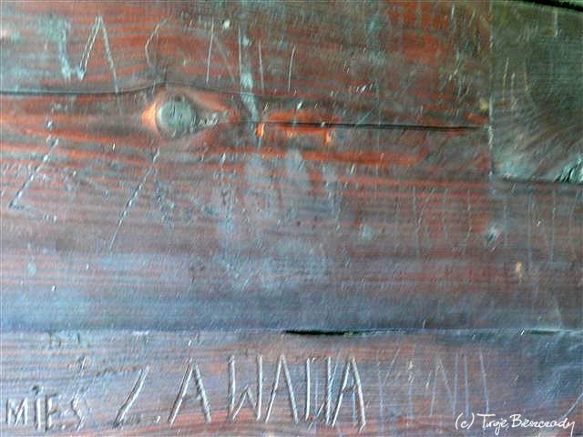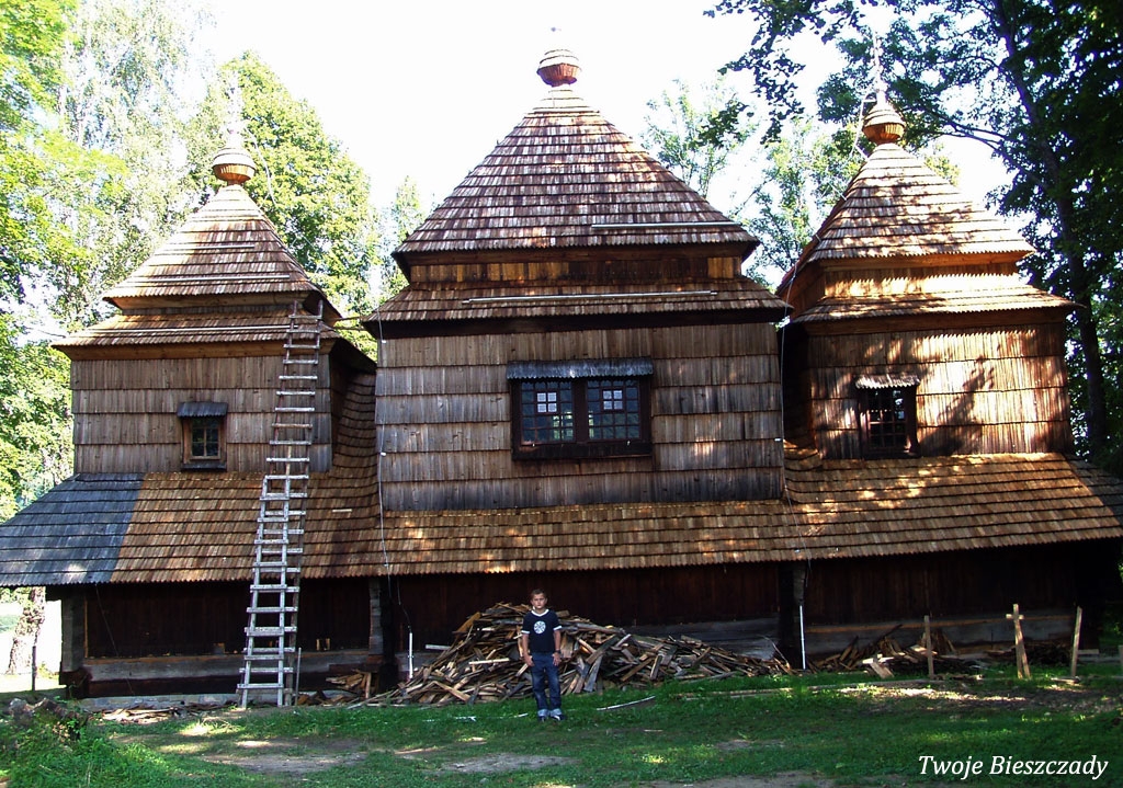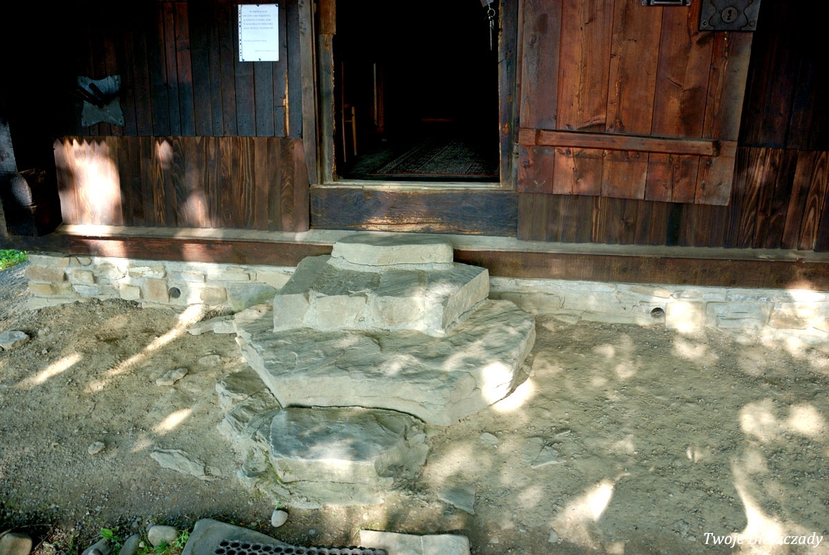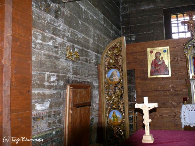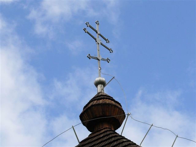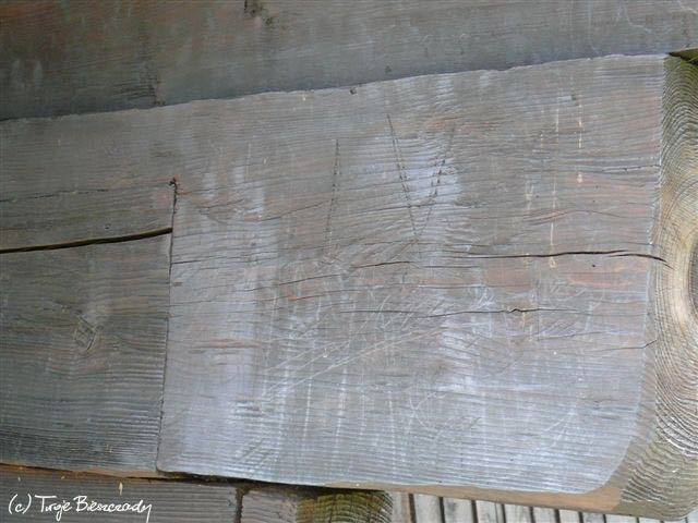 Smolnik, cerkiew, ślady niedźwiedzich łap i pazurów po nocnych ekscesach misia usiłującego dostać się do miodu (foto: P. Olejnik)