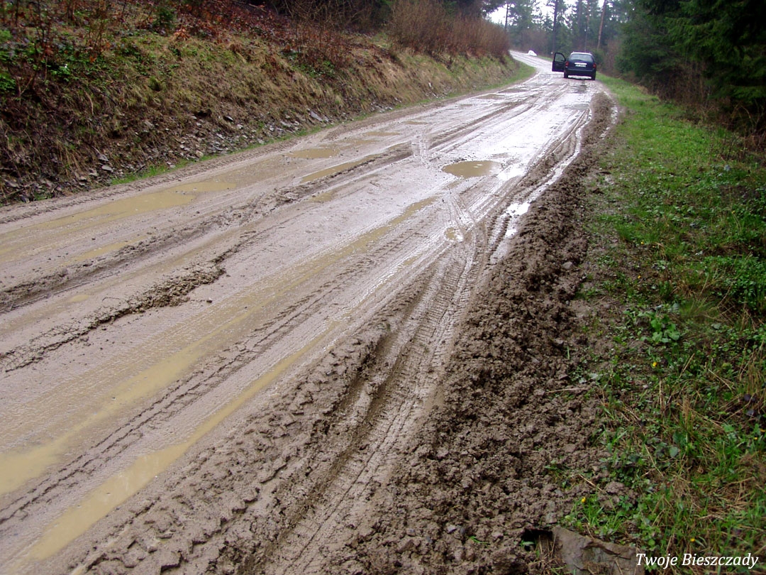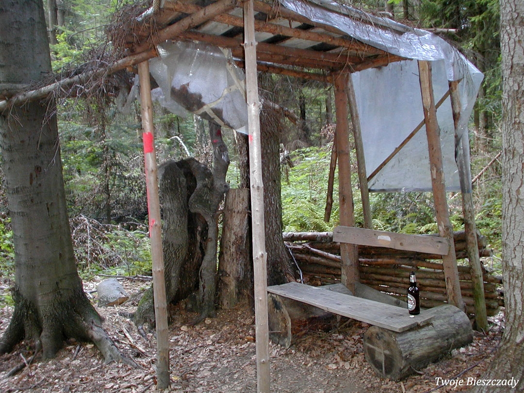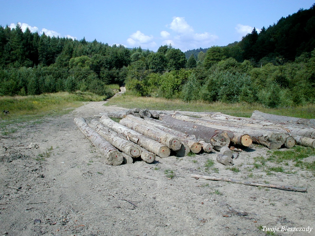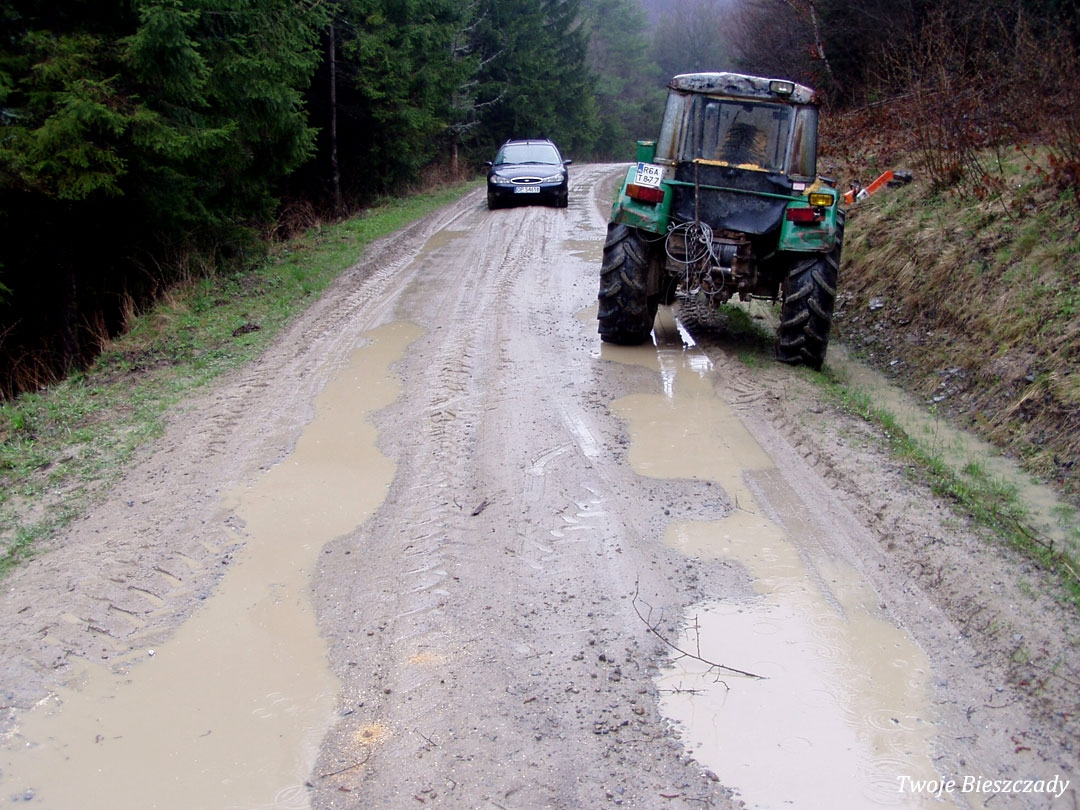 Balnica, droga na terenie dawnej wsi, montaż tablicy z informacją o kaplicy na trasie ściezki turystycznej. Na zdjęciu Wojtek "Kiju" Gosztyła, 2008 (foto: P. Szechyński)