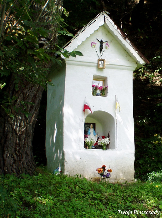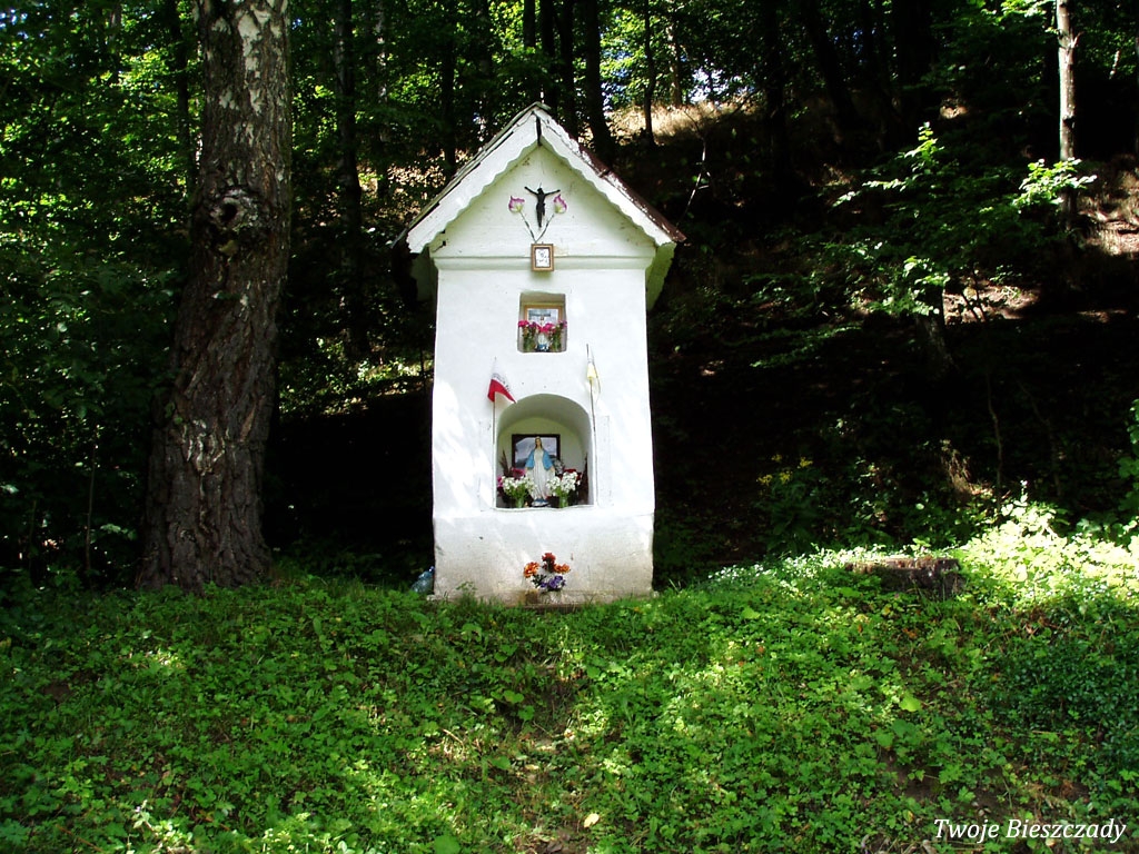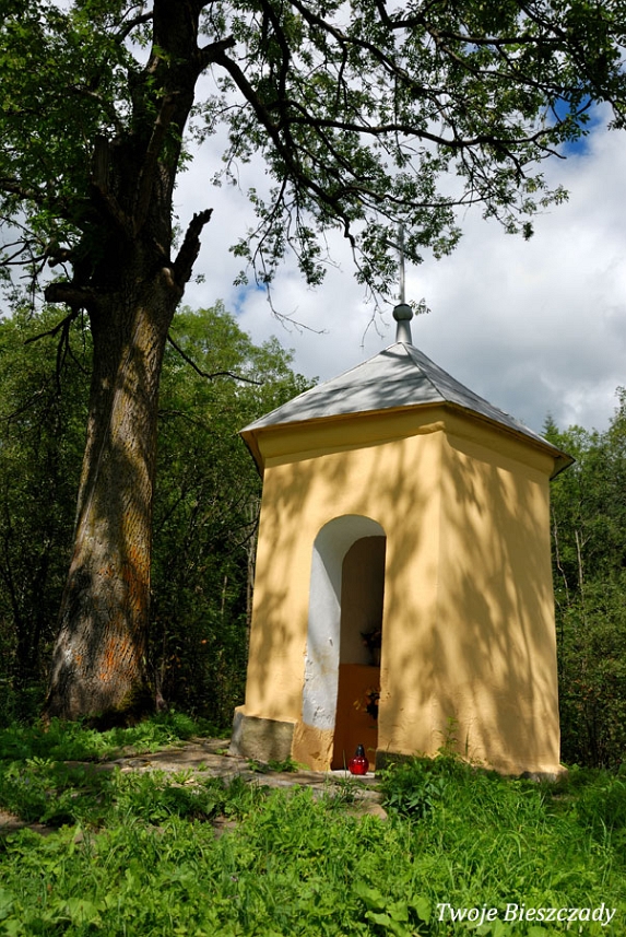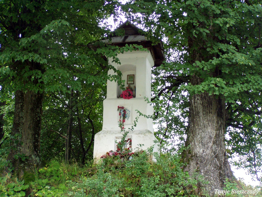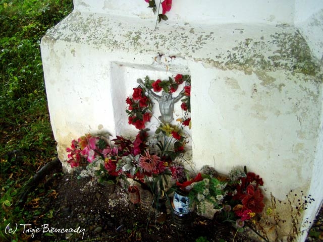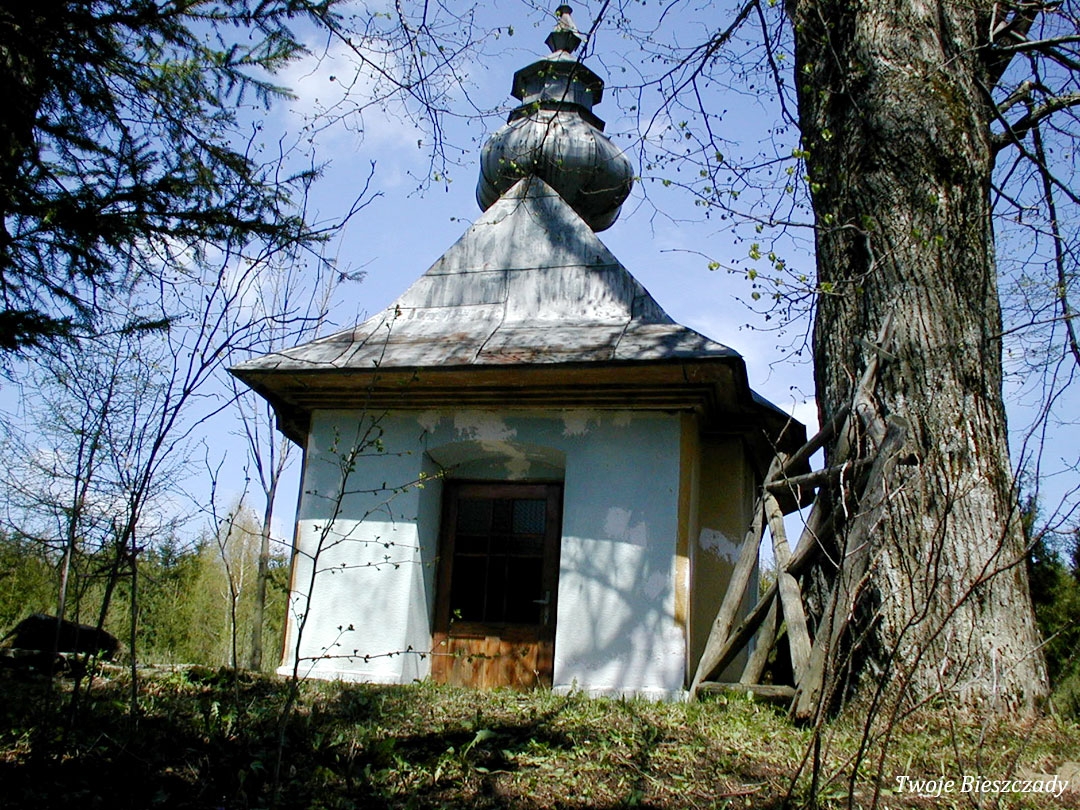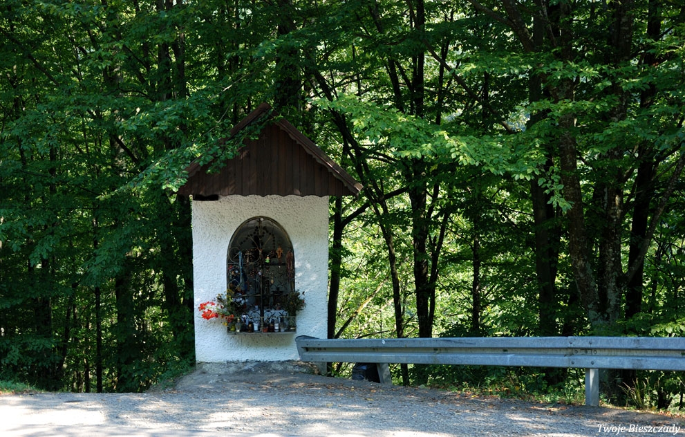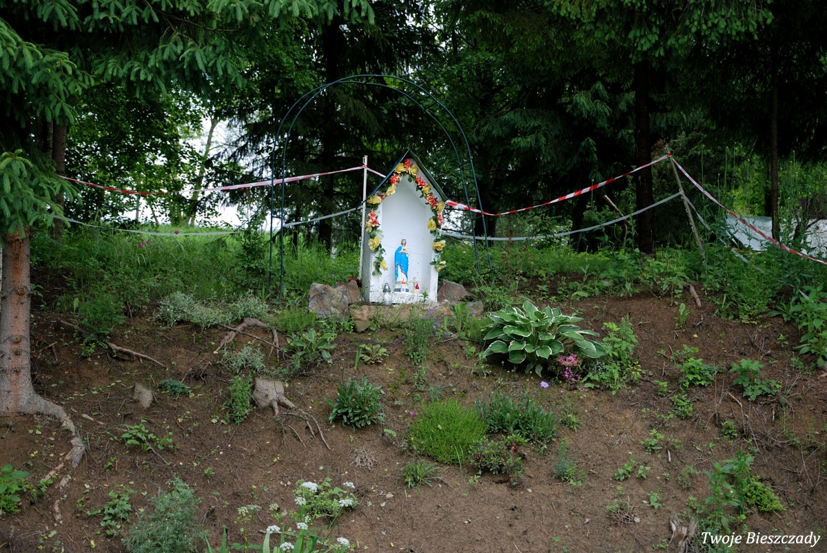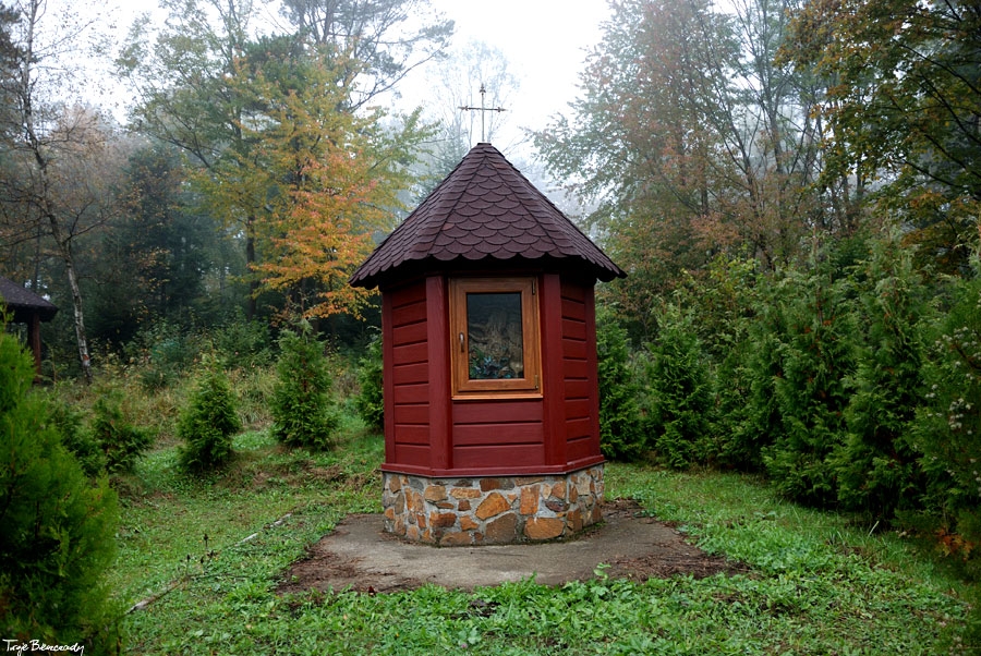 Współczesna kapliczka pod Markowską, przy drodze leśnej Baligród - Bereźnica Wyżna, 2014 (foto: Justyna Szechyńska)
