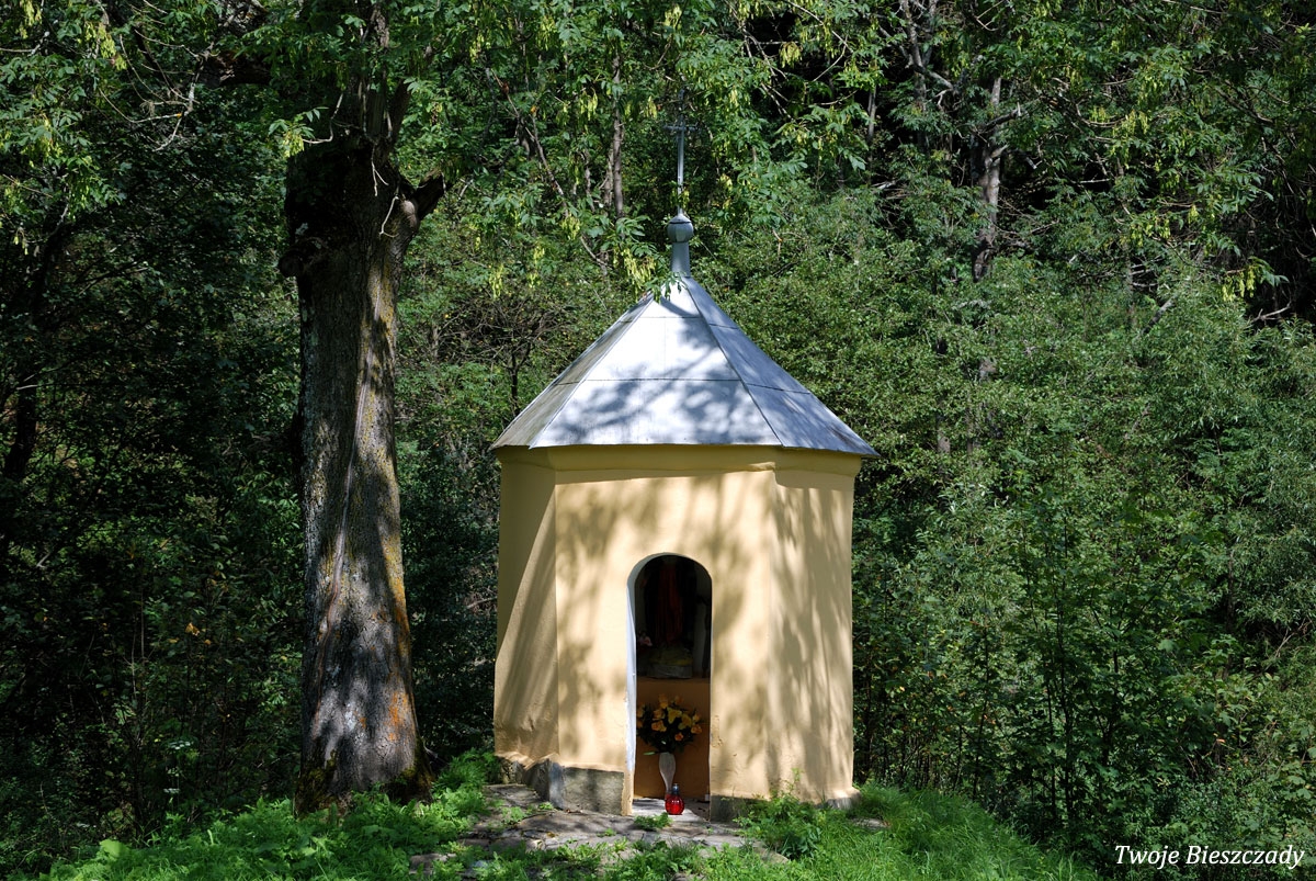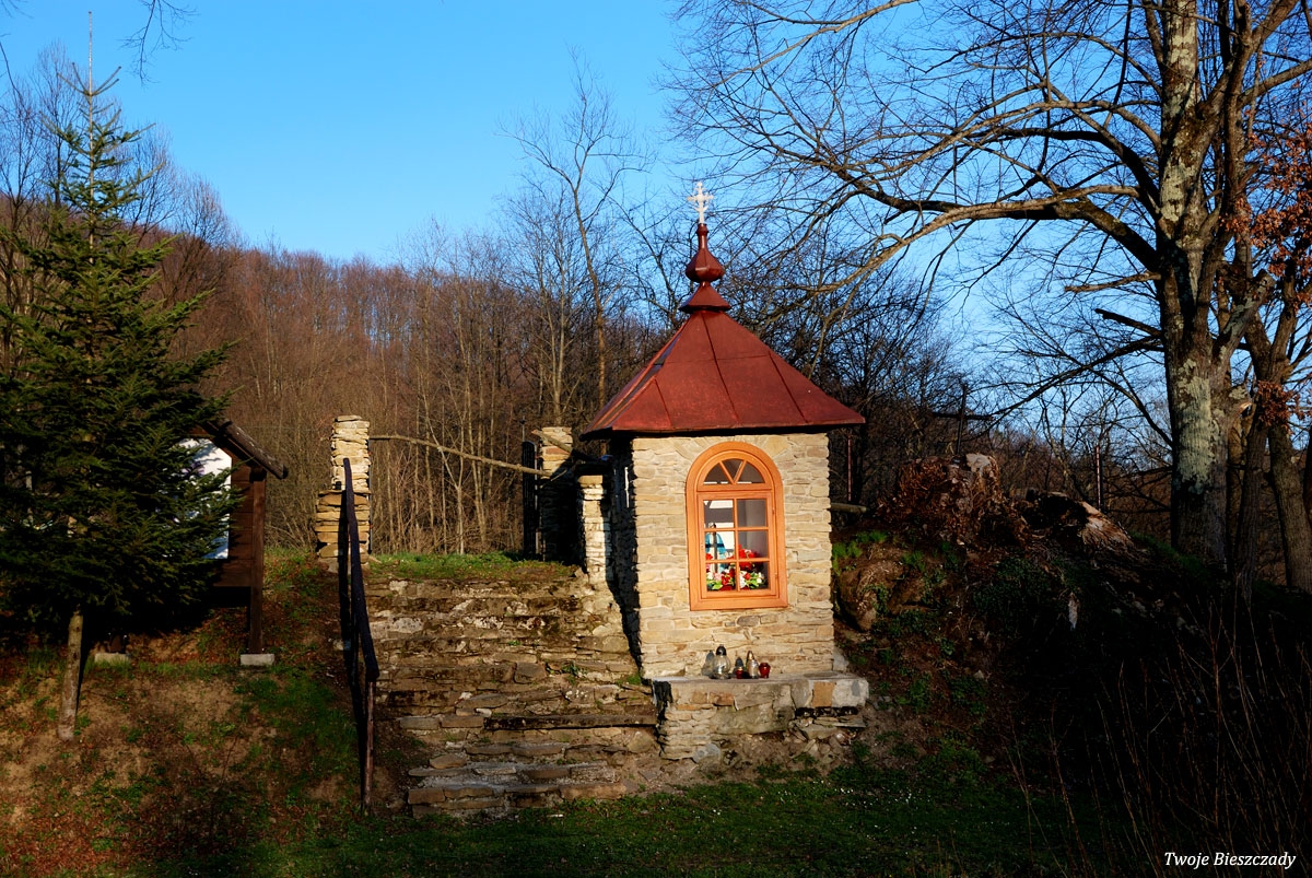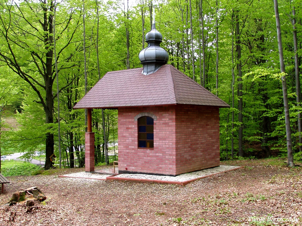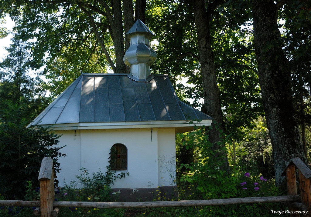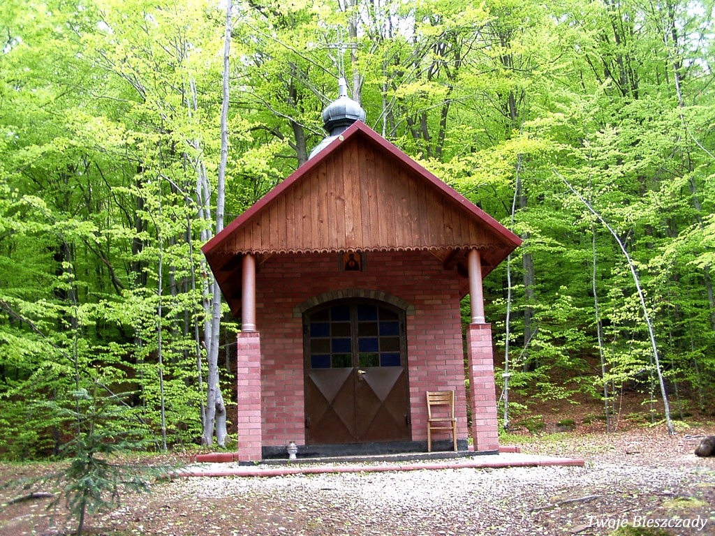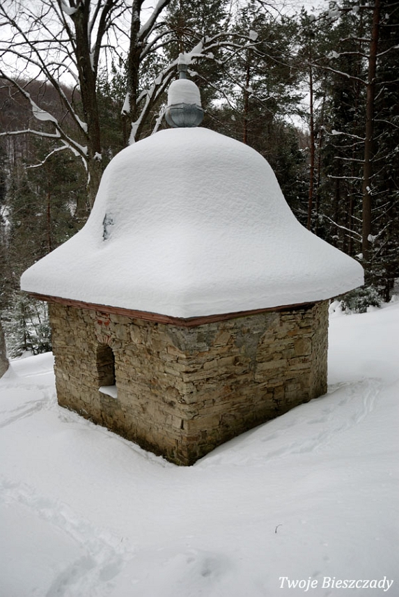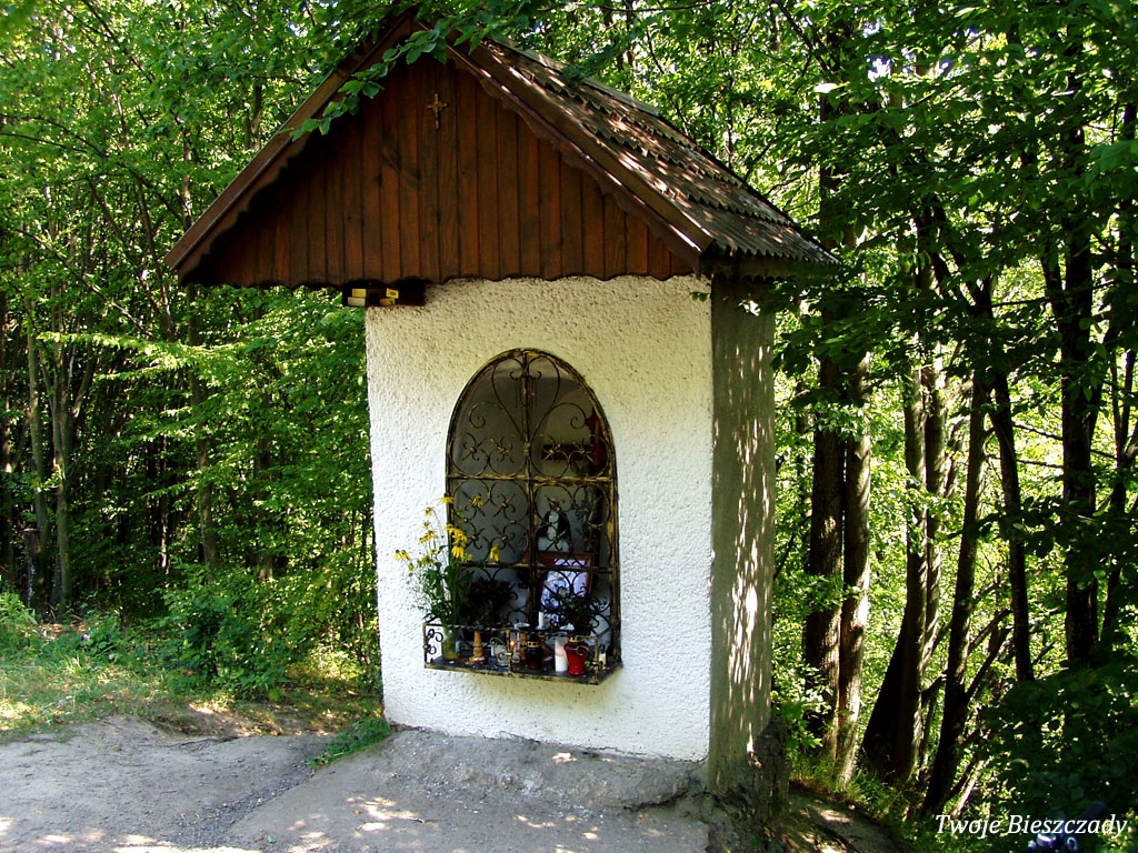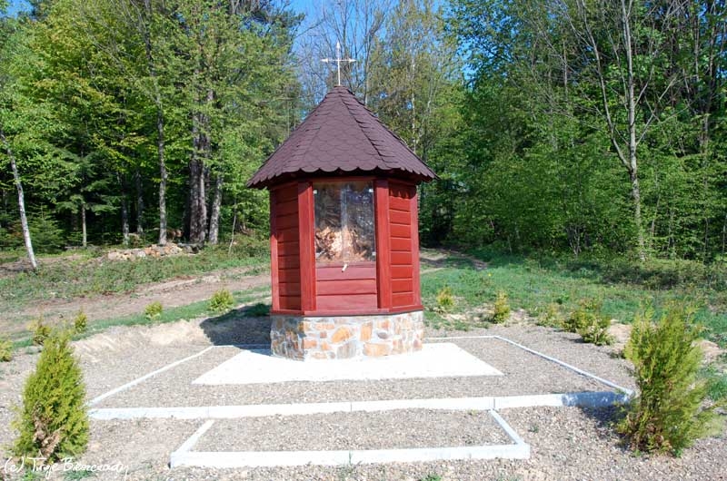 Współczesna kapliczka pod Markowską, przy drodze leśnej Baligród - Bereźnica Wyżna, 2014 (foto: Justyna Szechyńska)