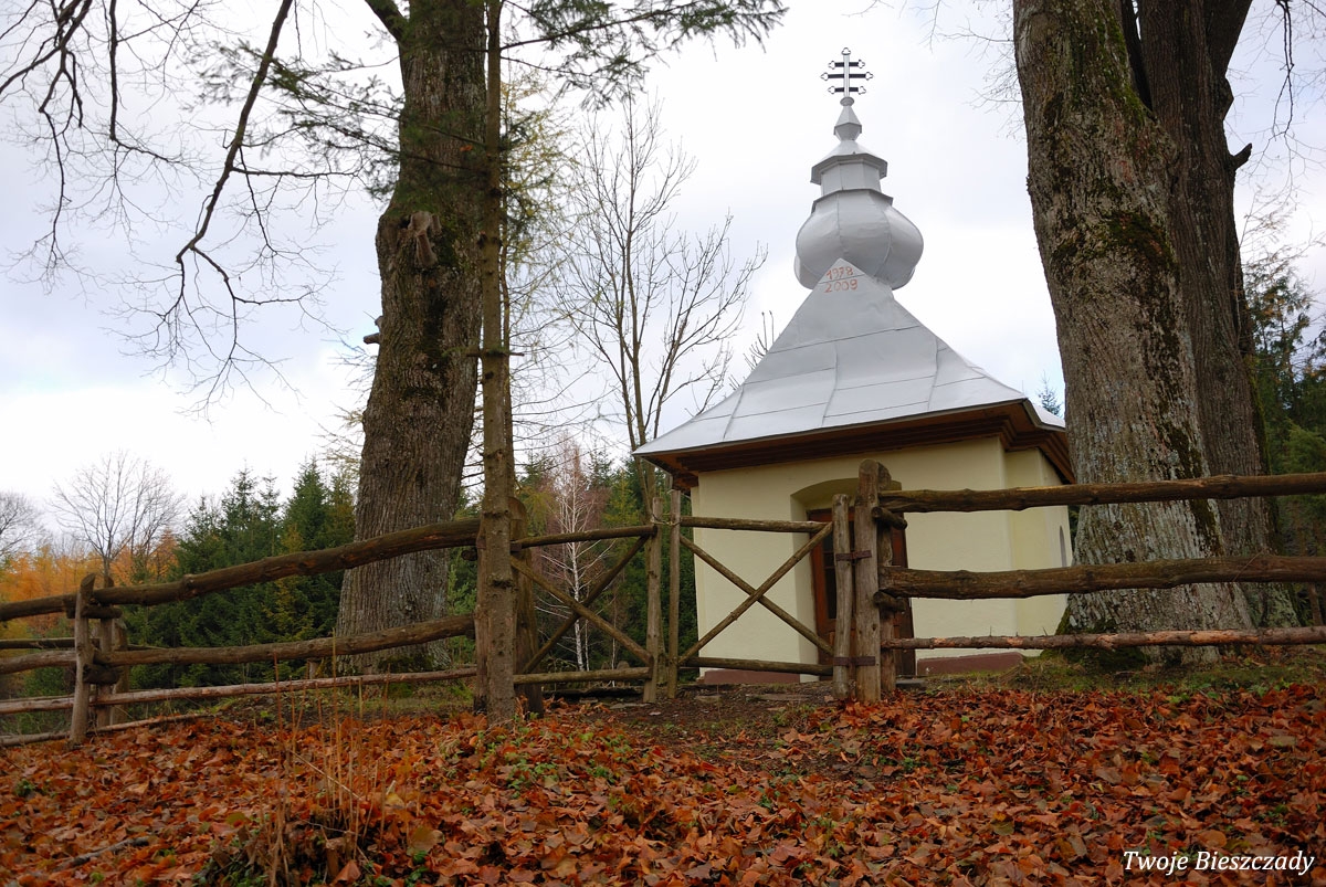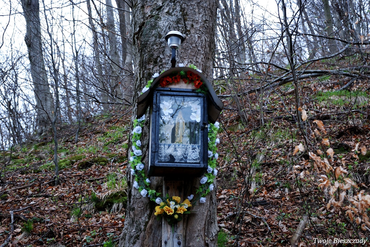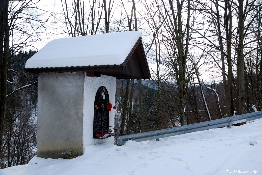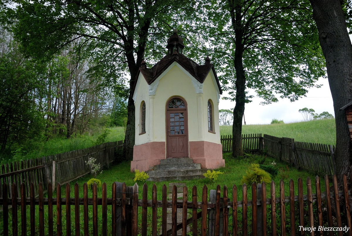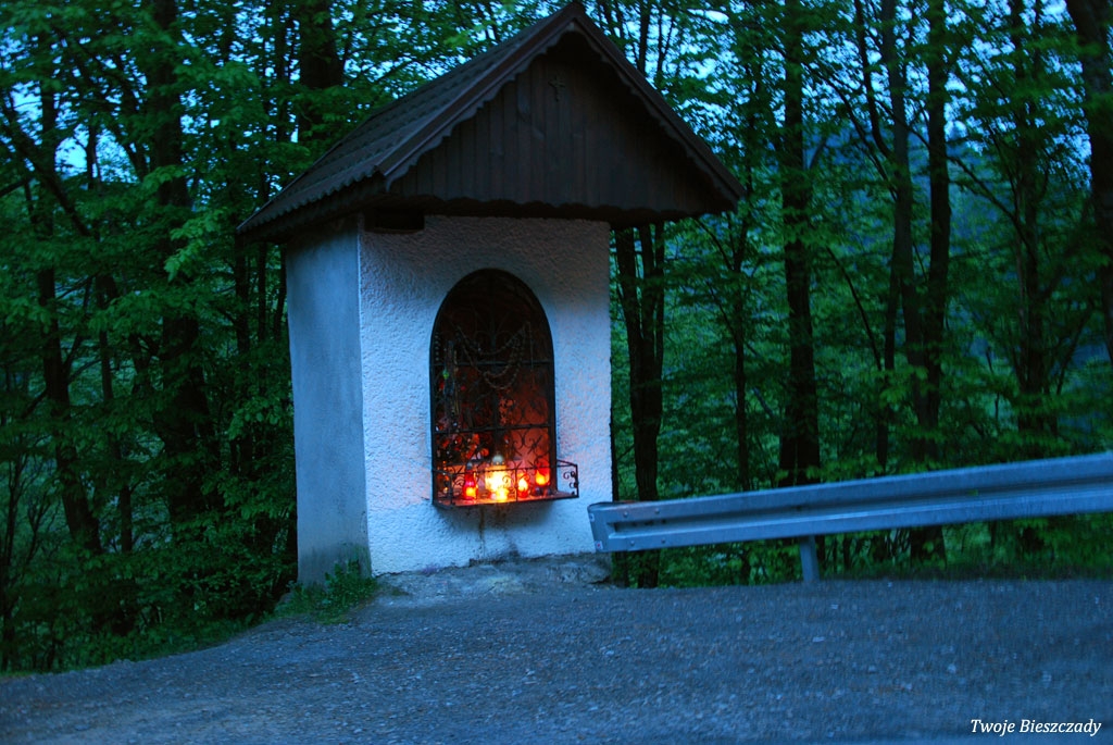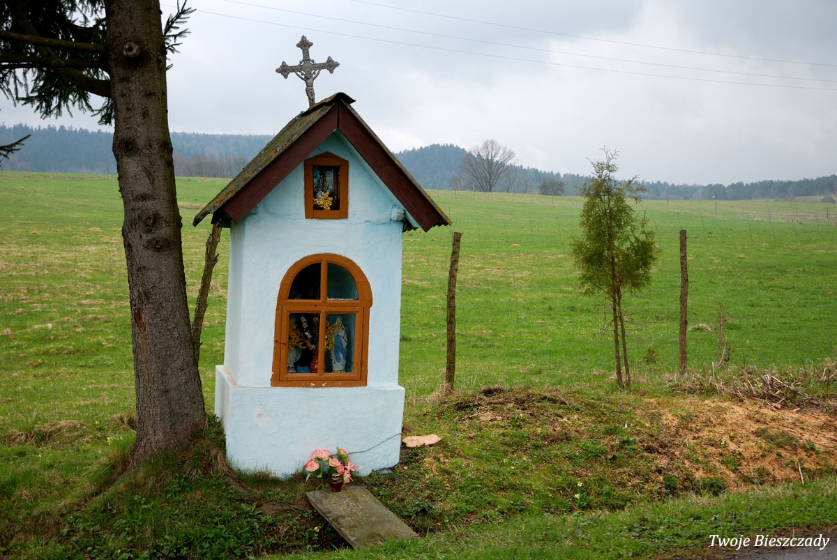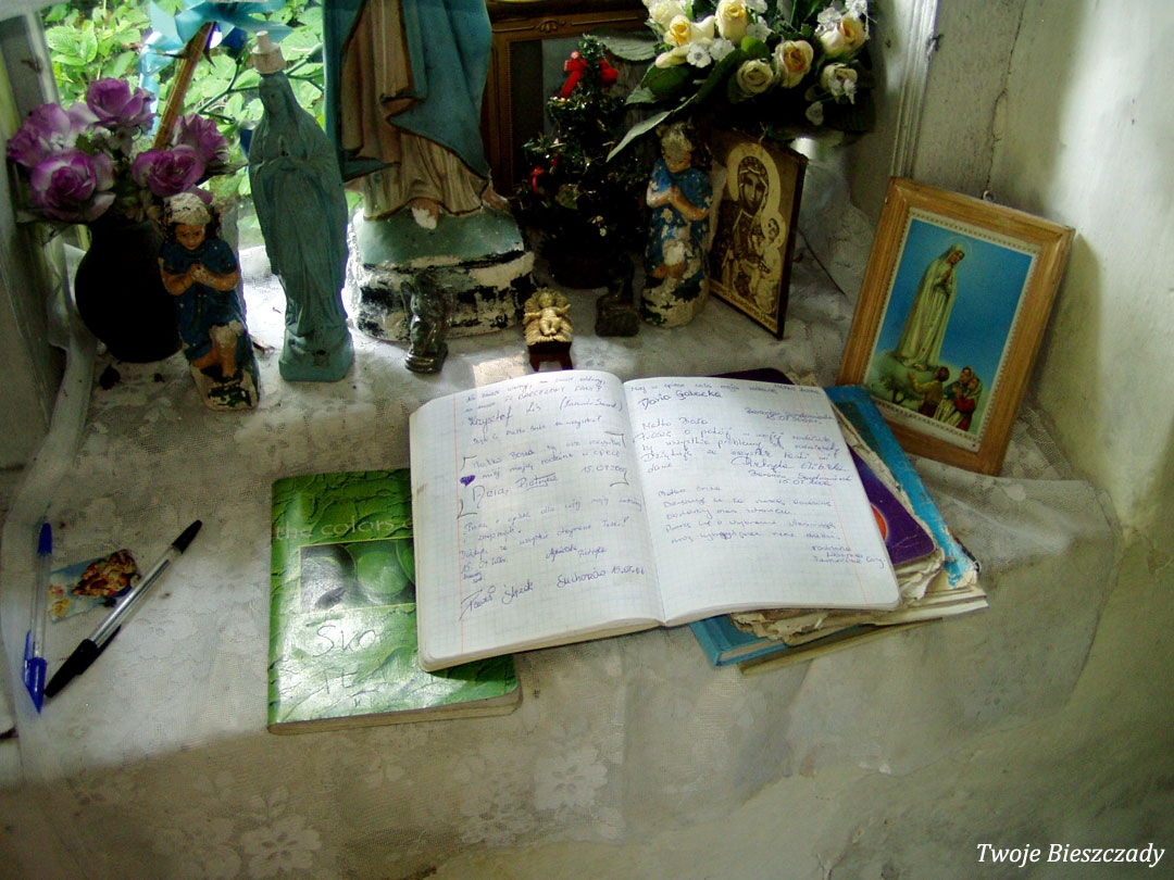 Współczesna kapliczka pod Markowską, przy drodze leśnej Baligród - Bereźnica Wyżna, 2014 (foto: Justyna Szechyńska)