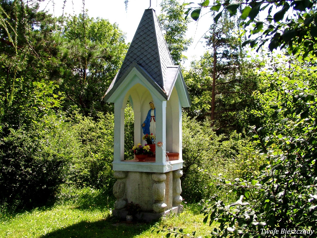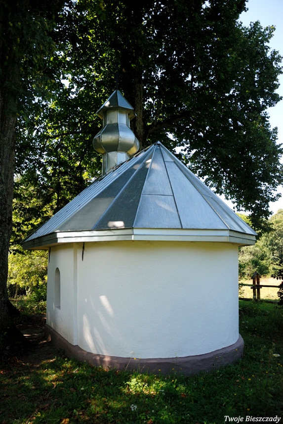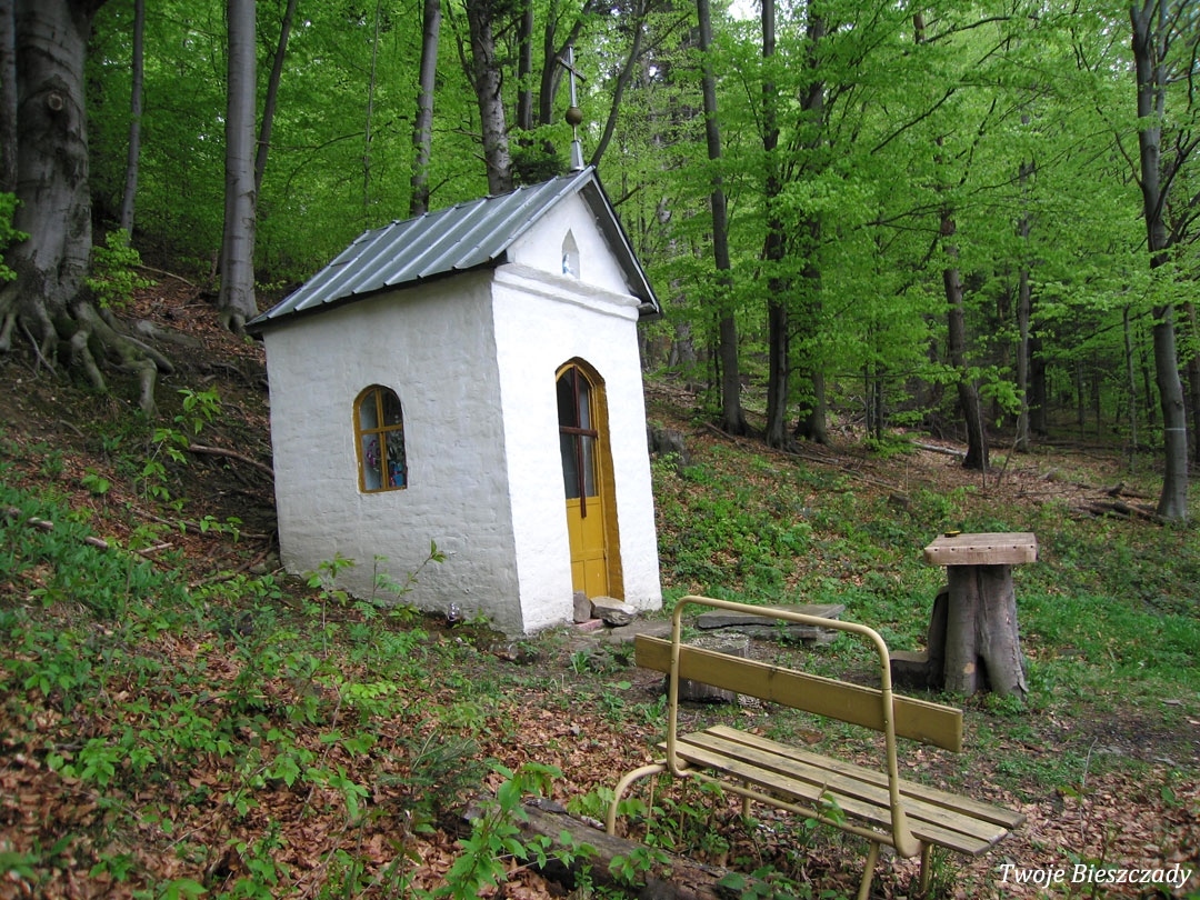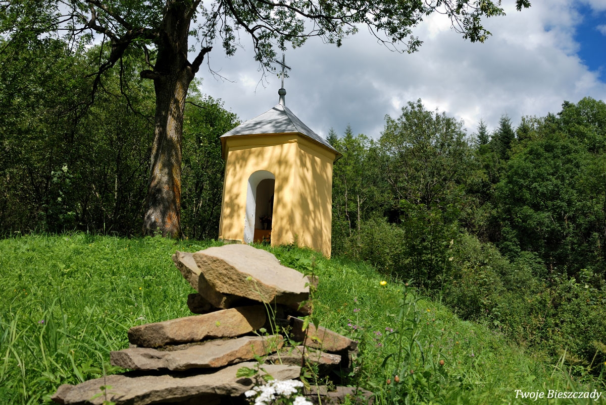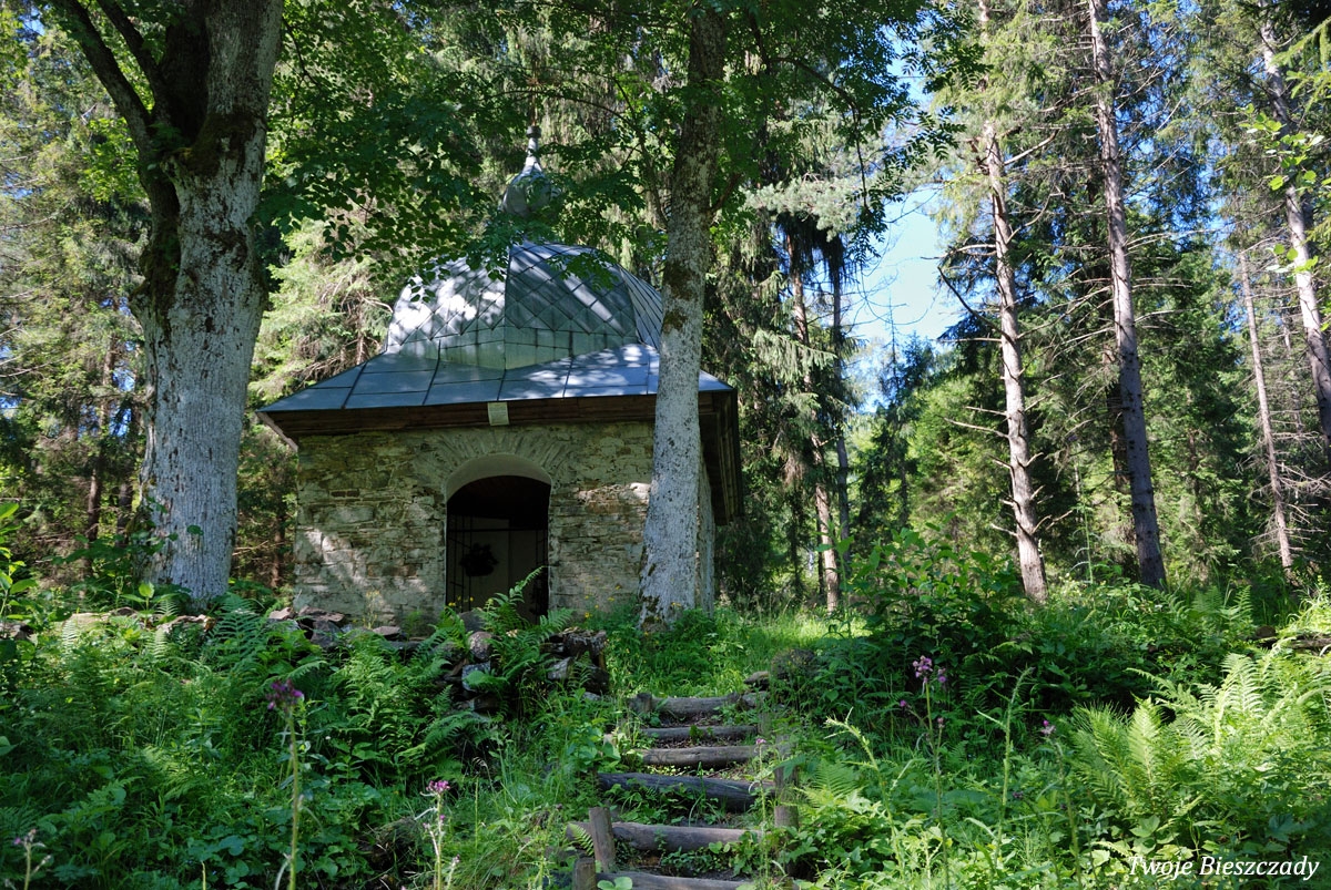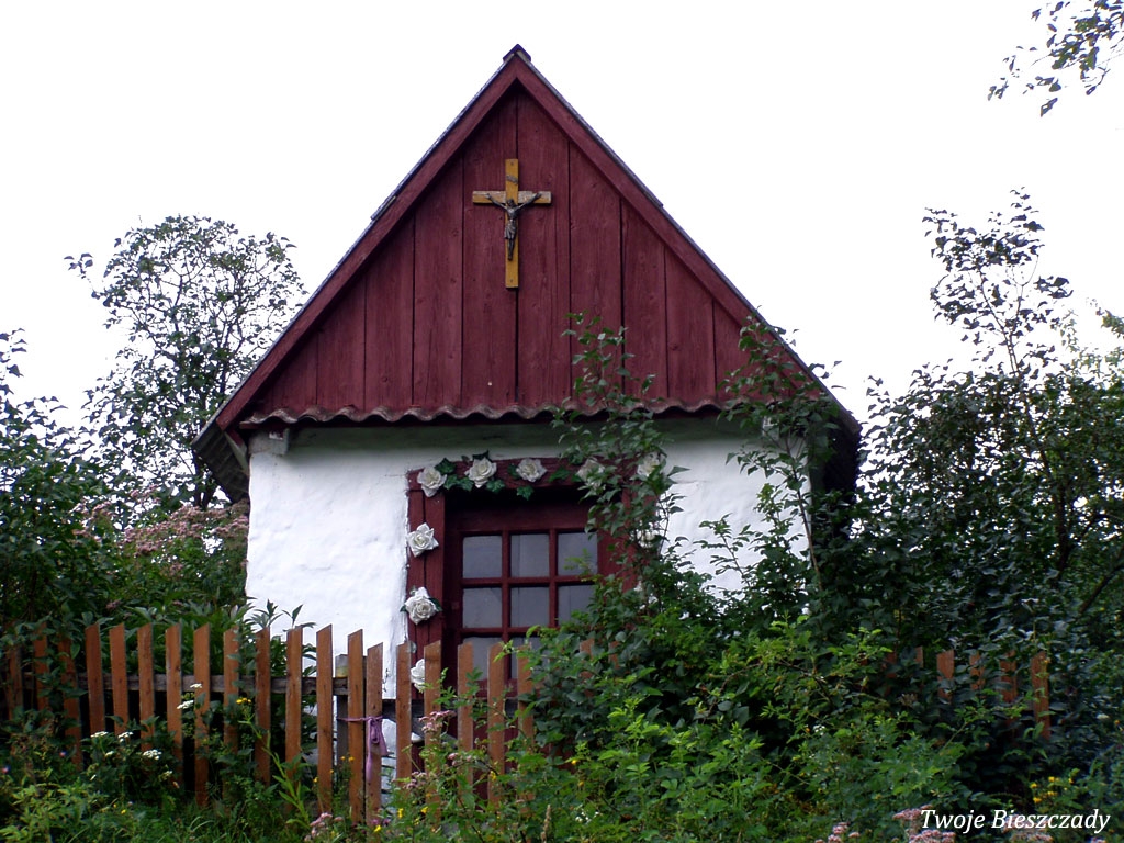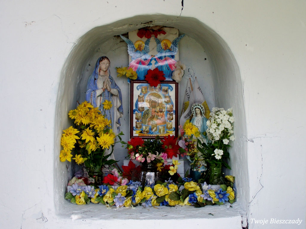 Współczesna kapliczka pod Markowską, przy drodze leśnej Baligród - Bereźnica Wyżna, 2014 (foto: Justyna Szechyńska)