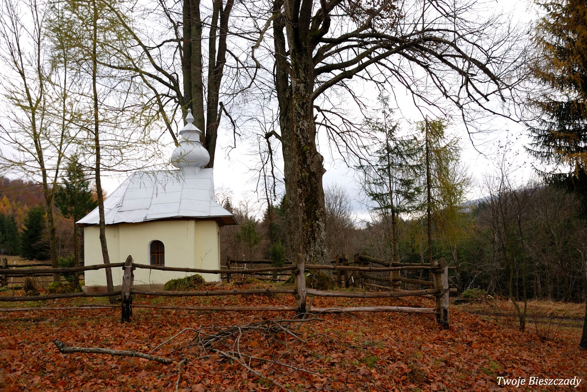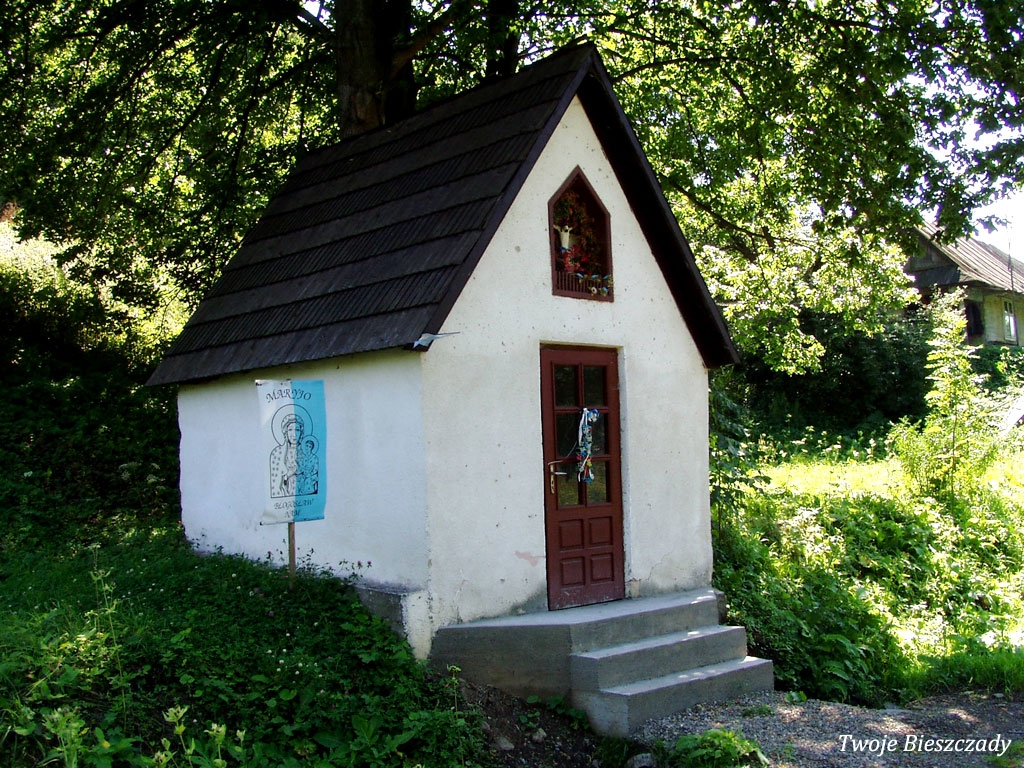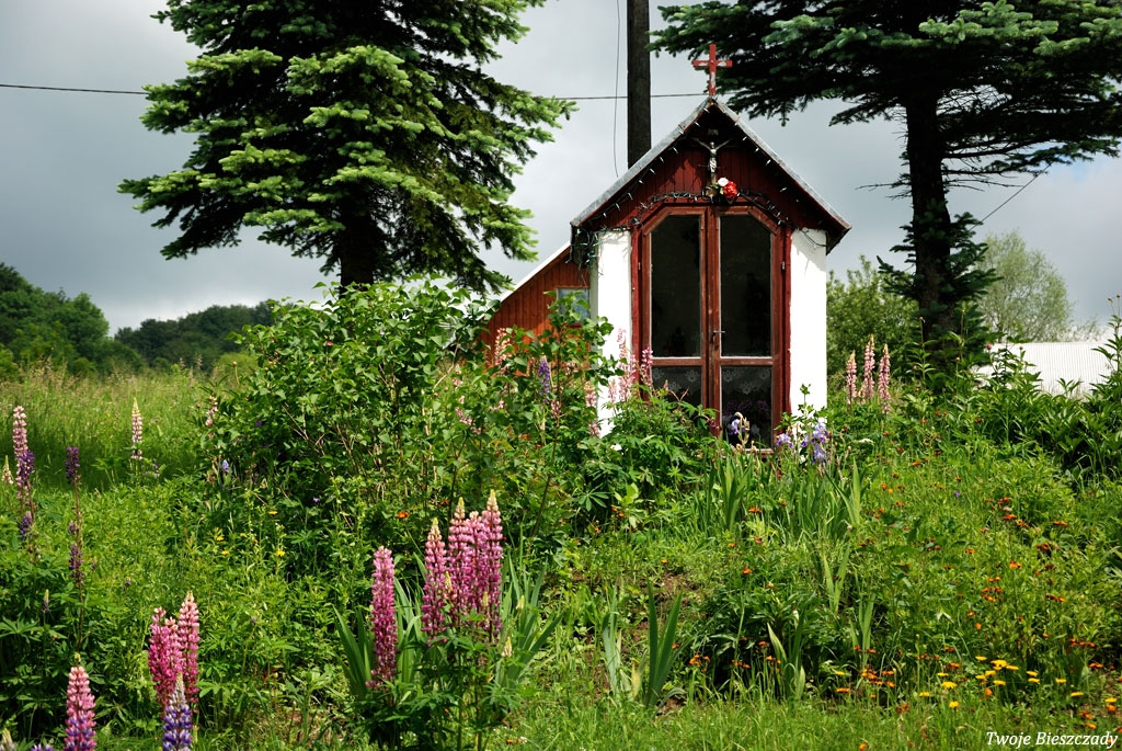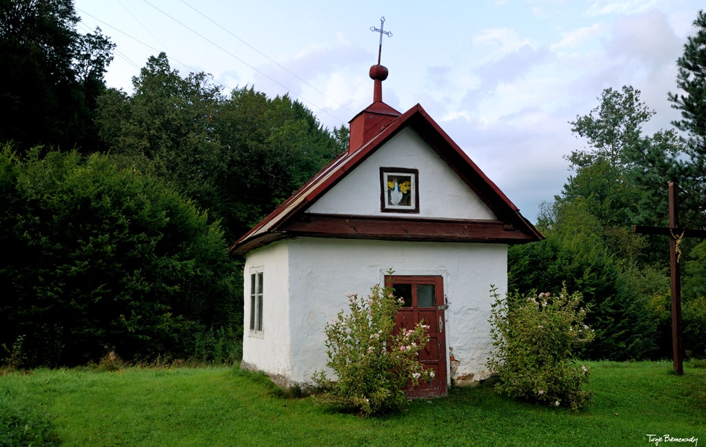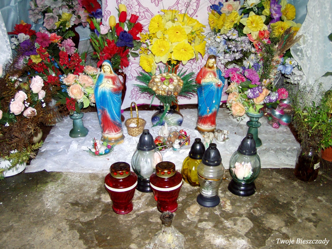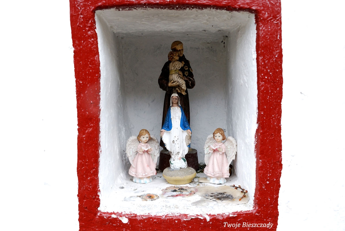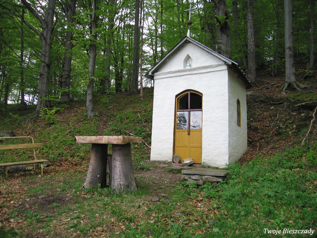 Współczesna kapliczka pod Markowską, przy drodze leśnej Baligród - Bereźnica Wyżna, 2014 (foto: Justyna Szechyńska)