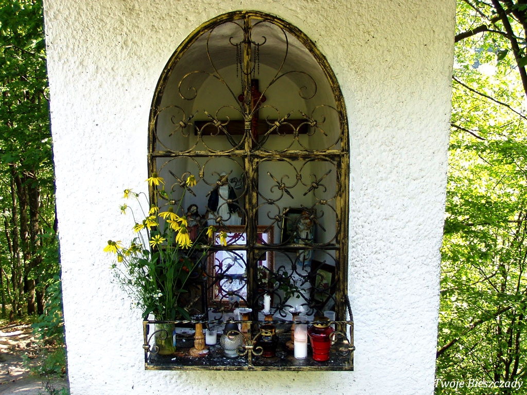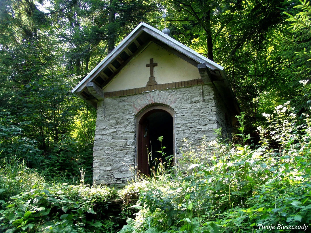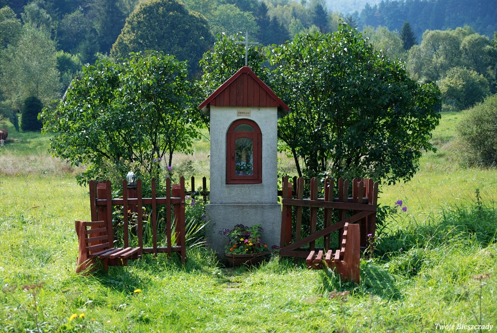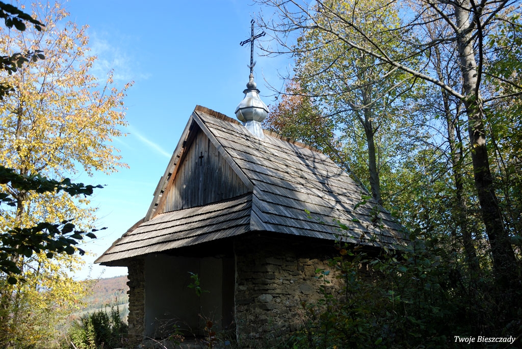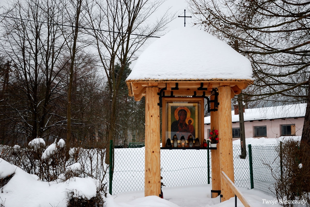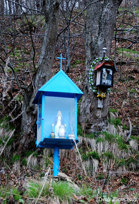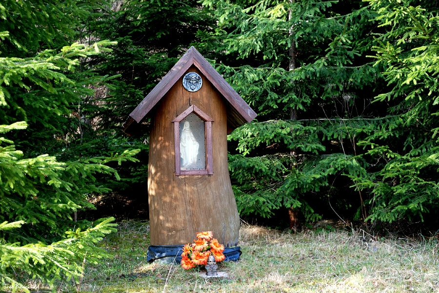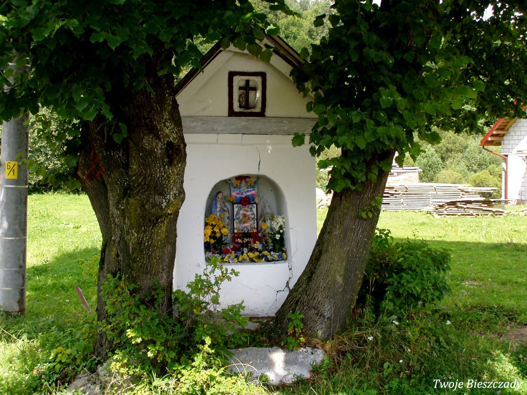 Współczesna kapliczka pod Markowską, przy drodze leśnej Baligród - Bereźnica Wyżna, 2014 (foto: Justyna Szechyńska)