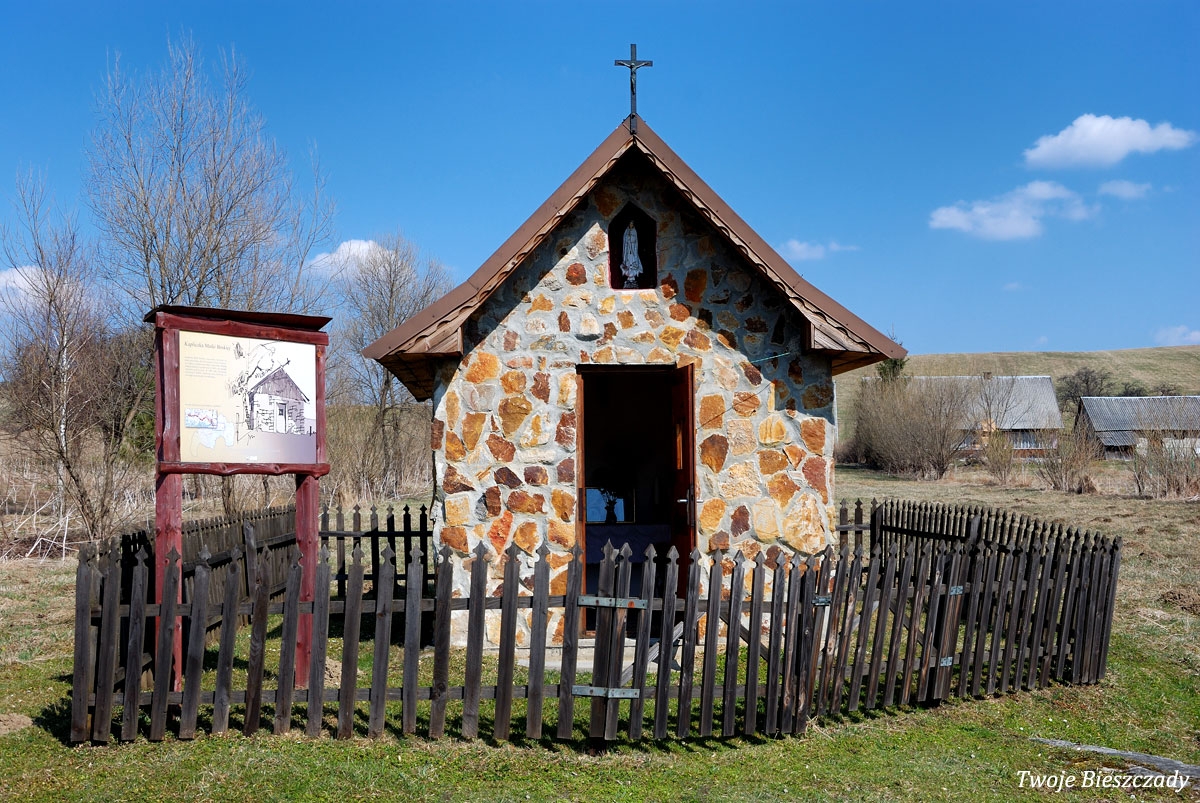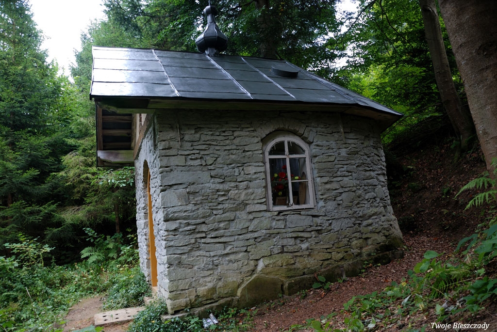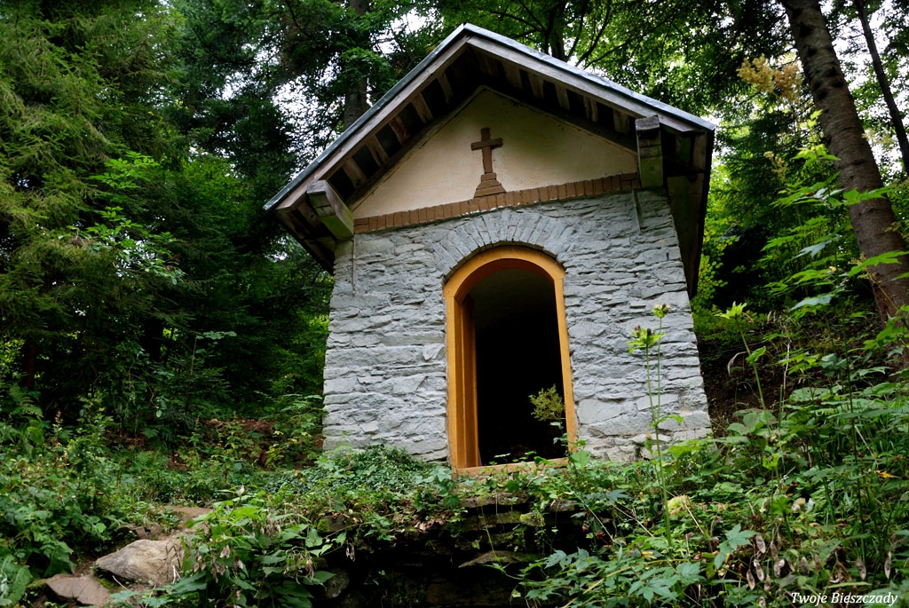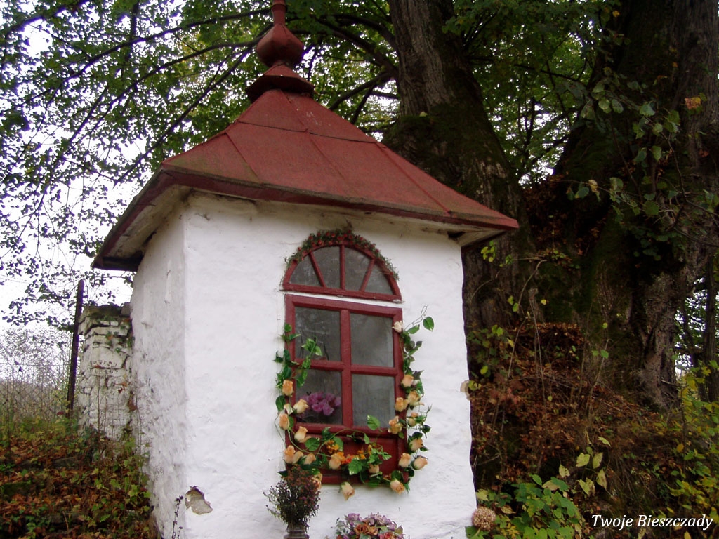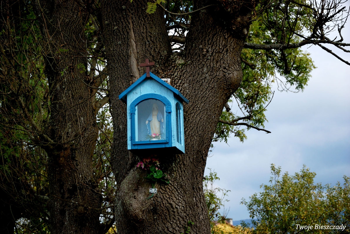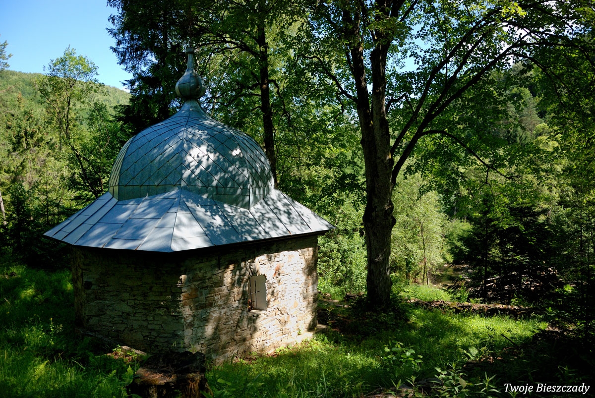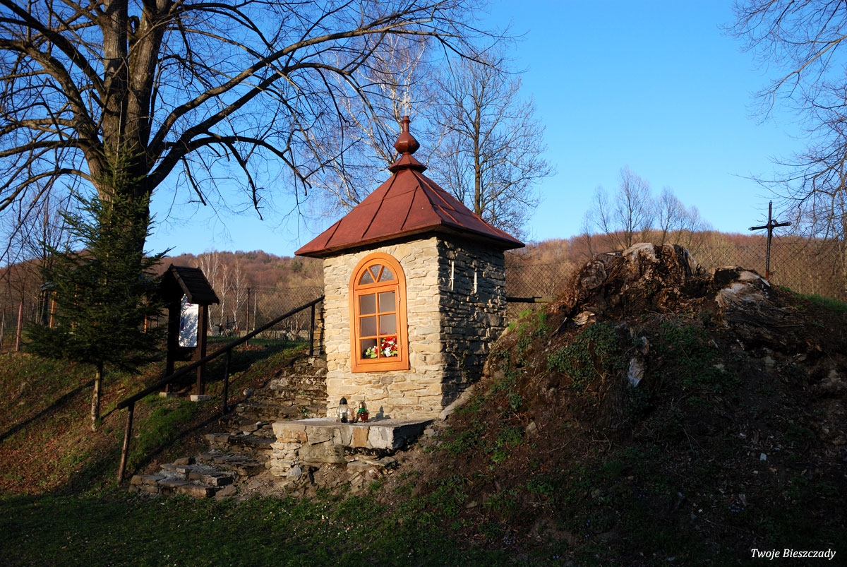 Współczesna kapliczka pod Markowską, przy drodze leśnej Baligród - Bereźnica Wyżna, 2014 (foto: Justyna Szechyńska)