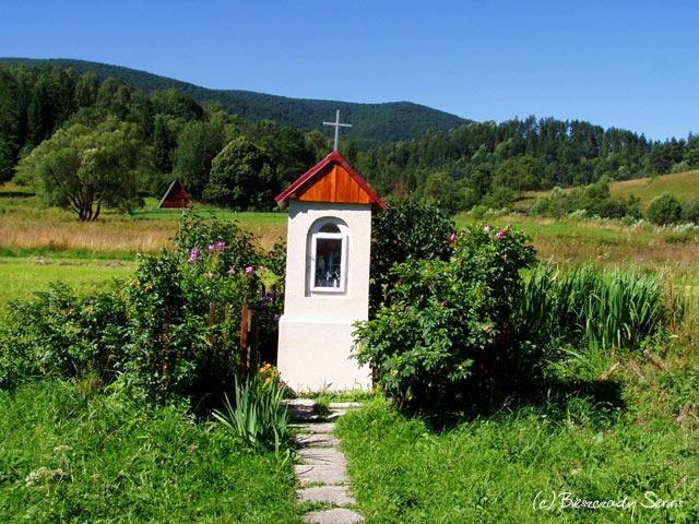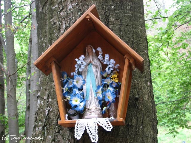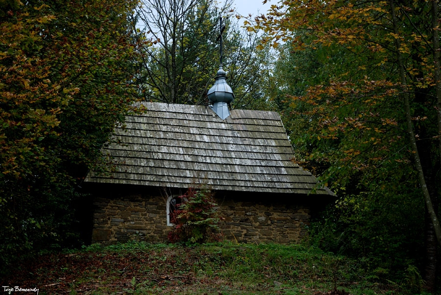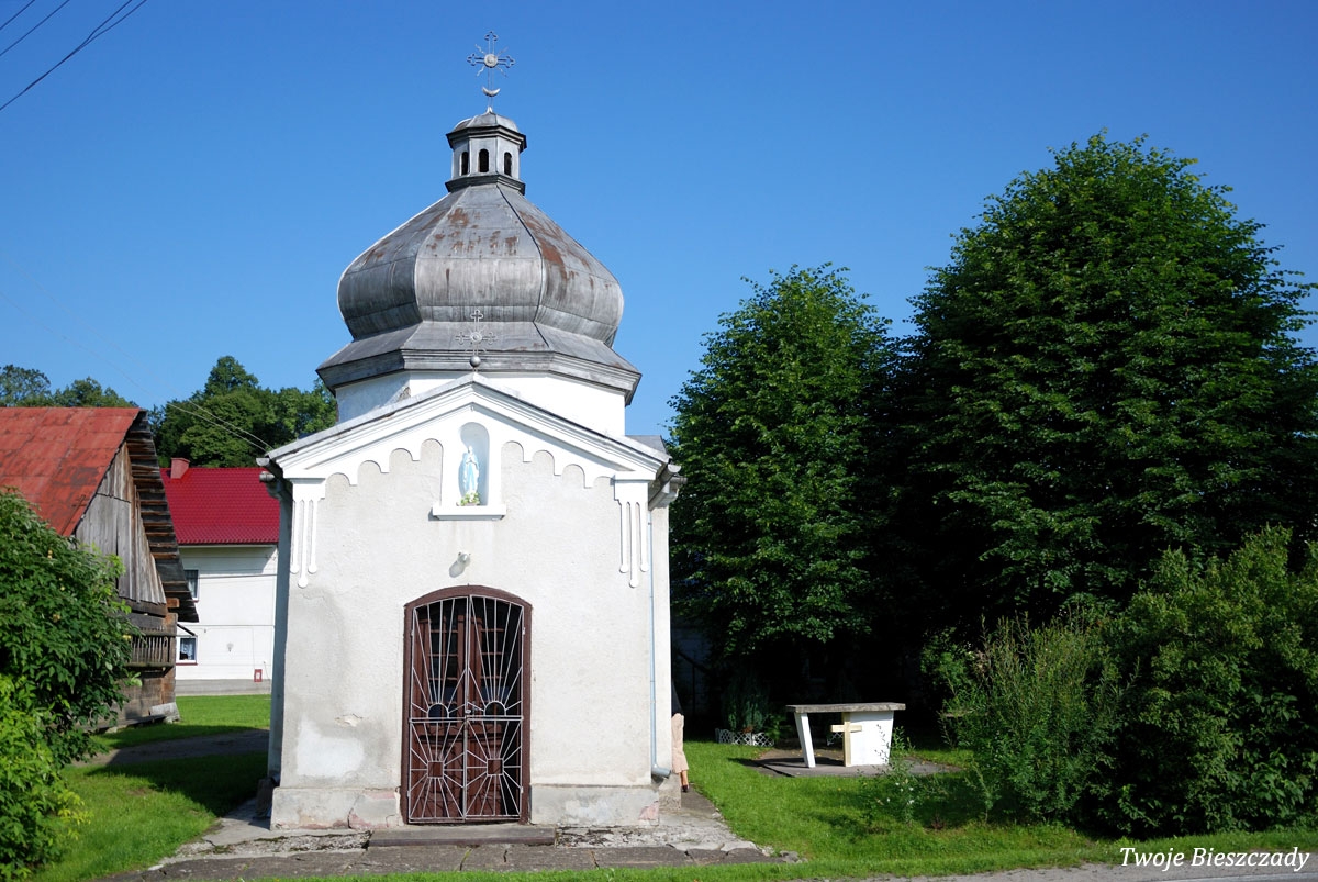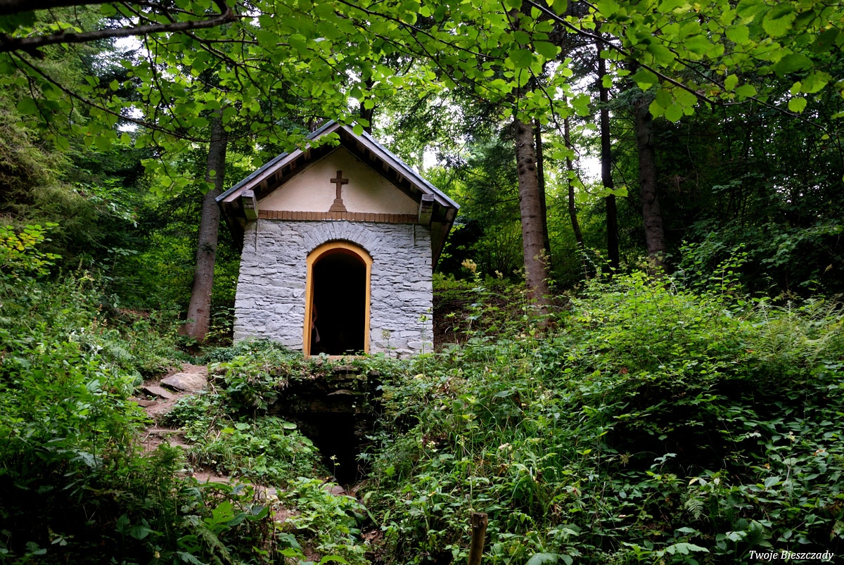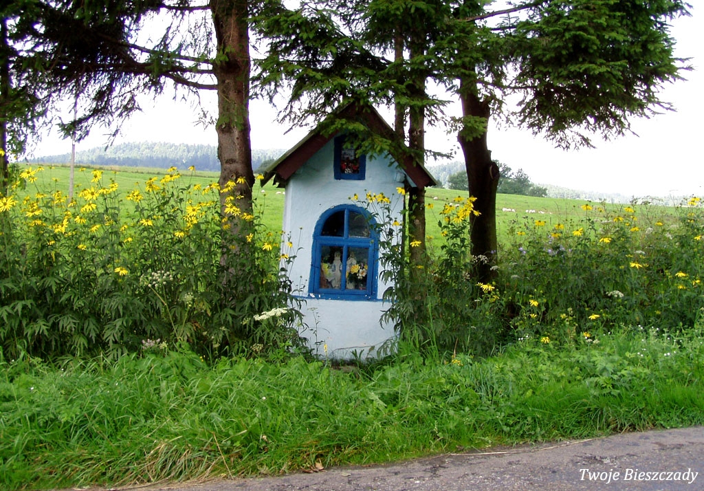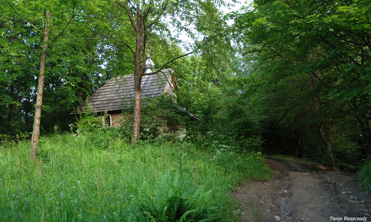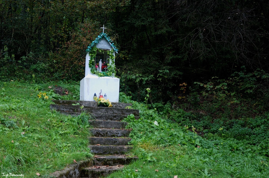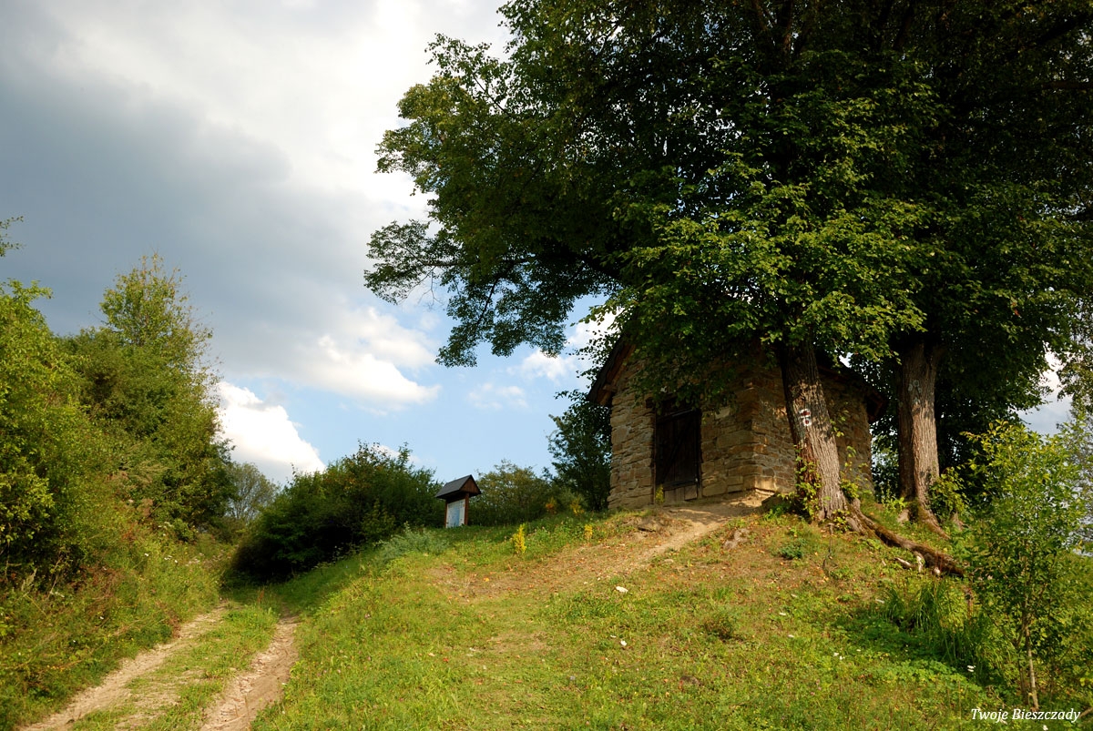 Współczesna kapliczka pod Markowską, przy drodze leśnej Baligród - Bereźnica Wyżna, 2014 (foto: Justyna Szechyńska)