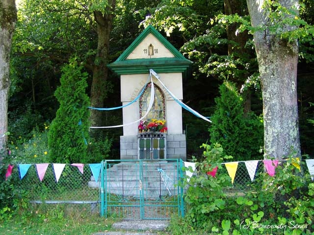 Maniów, kapliczka z pocz. XXw., po remoncie, który miał miejsce w maju 2017. Stan na sierpień 2018 (foto: P. Szechyński)