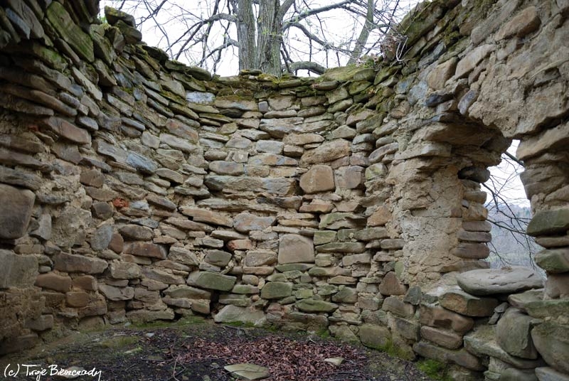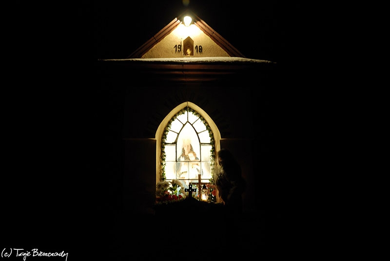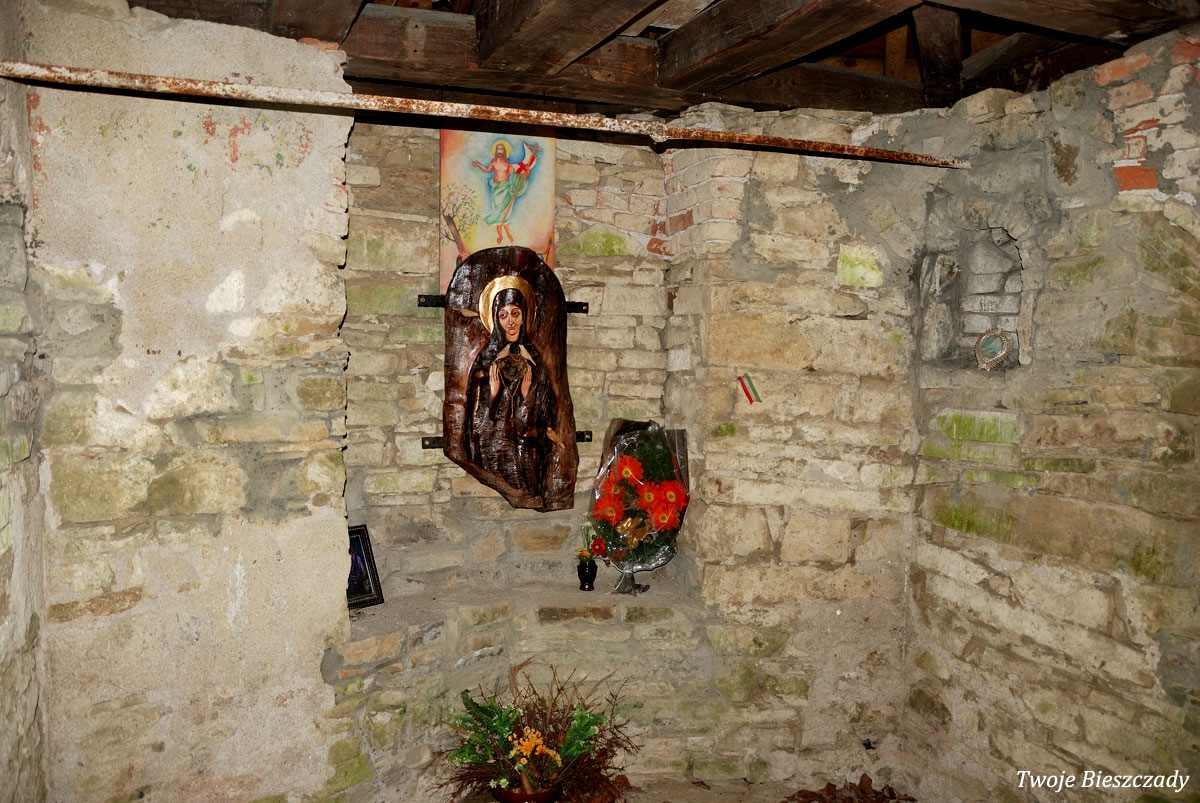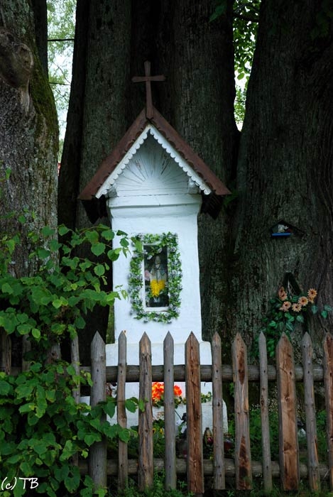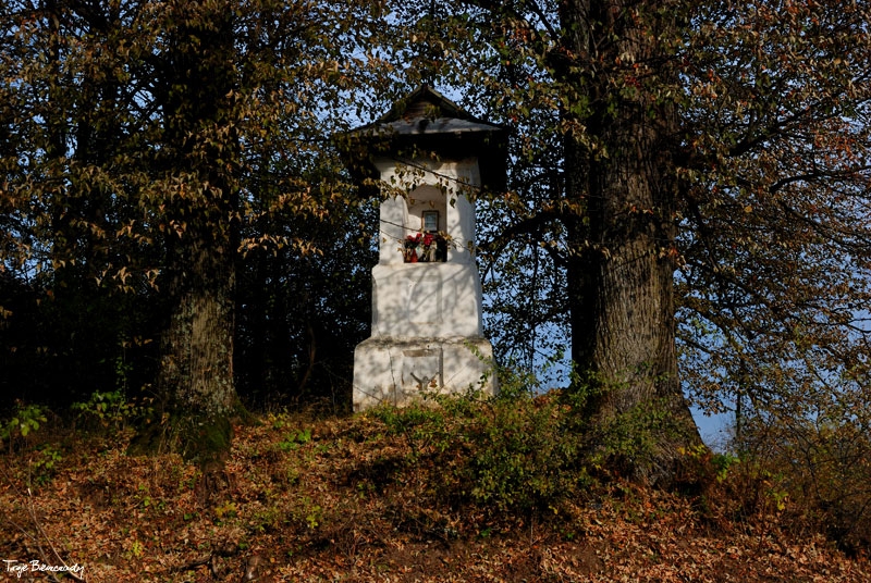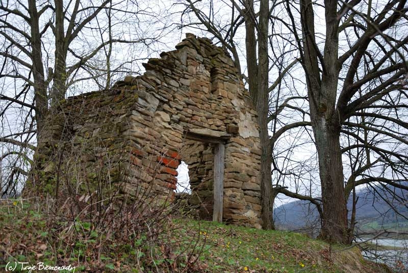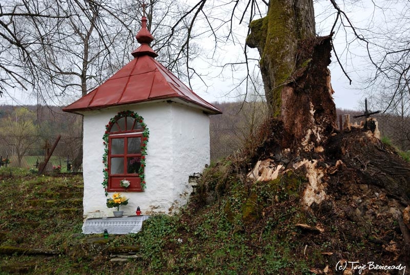 Rajskie, kapliczka na Hrabie, wiosna 2010. Rozebrana latem 2010 a następnie zrekonstruowana (foto: P. Szechyński)