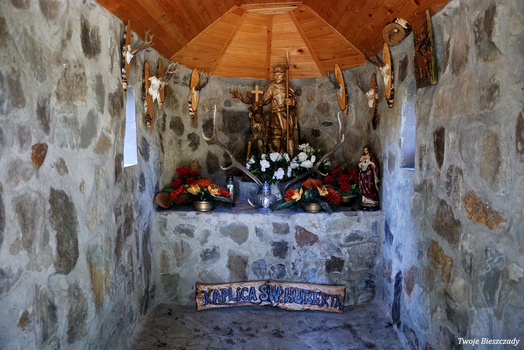 Kapliczka Św. Huberta przy drodze Rzepedź - Prełuki. Zbudowana obok ruin starej kapliczki, 2018 (foto: P. Szechyński)