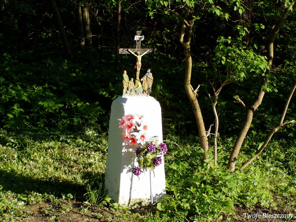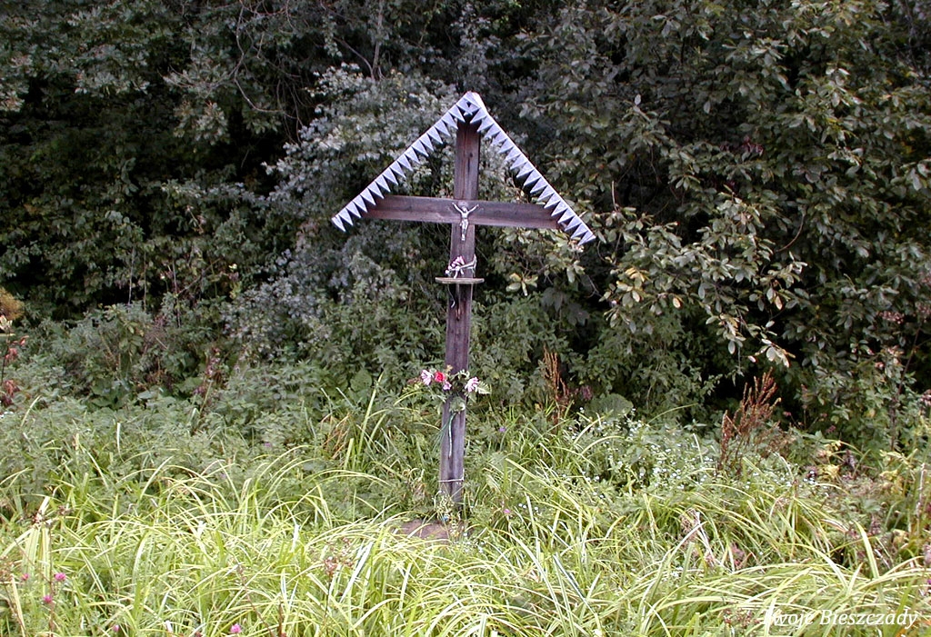 Łupków, cokół pod krzyż przydrożny obok Chaty w Łupkowie, przy drodze do Zubeńska, 2004 (foto: P. Szechyński)