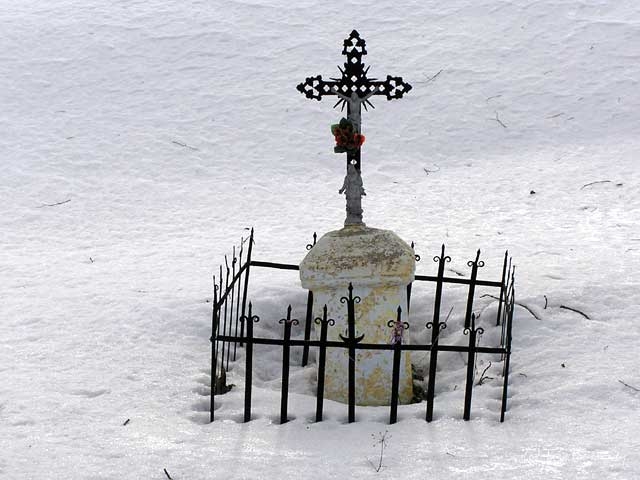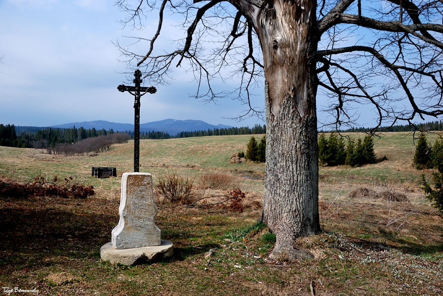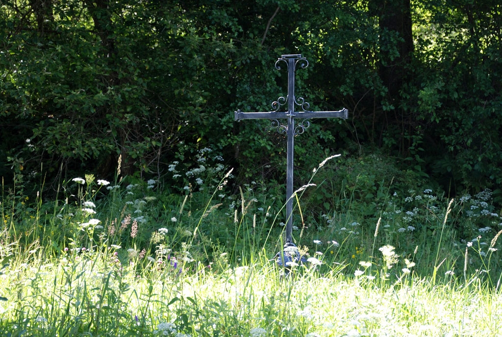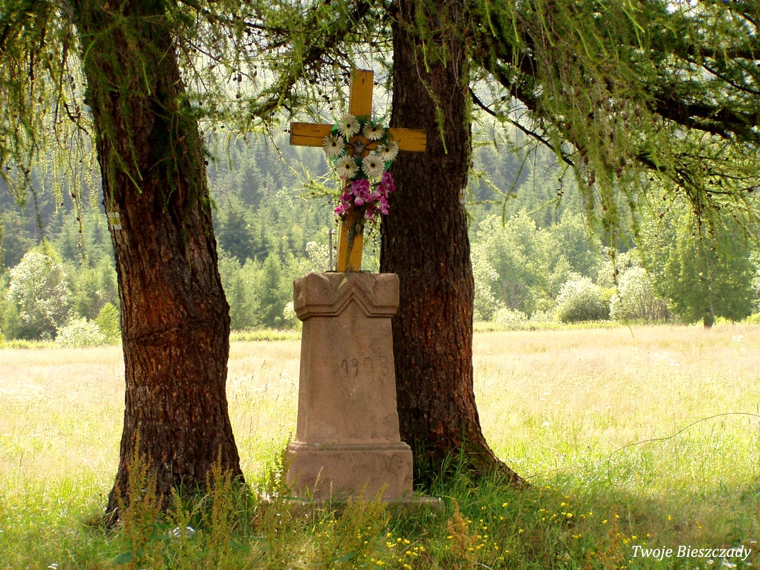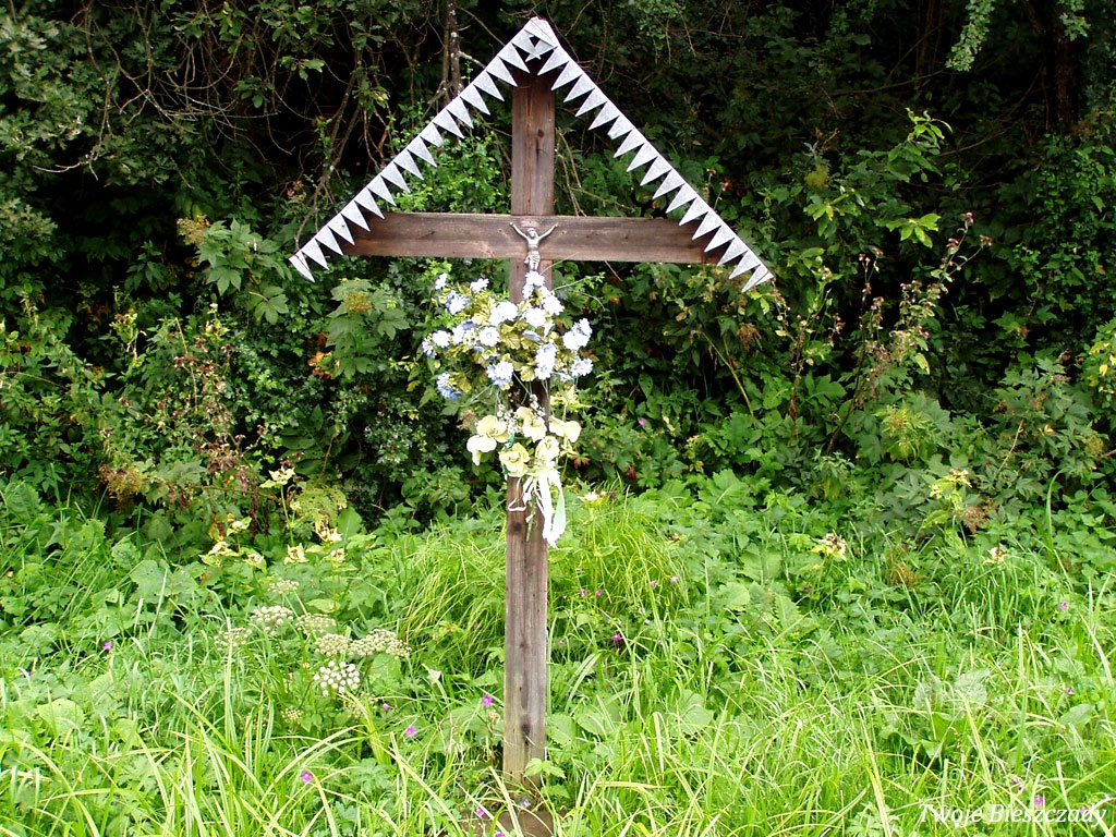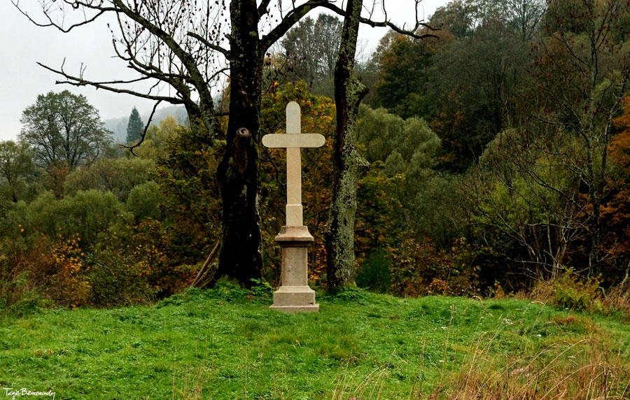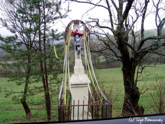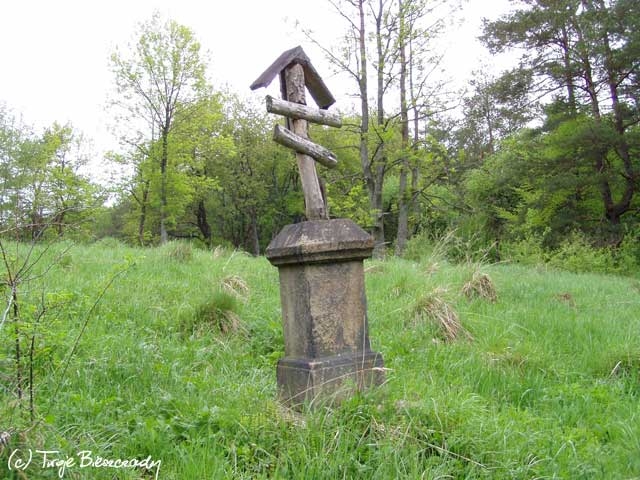 Ruské (po słowackiej stronie Przełęczy nad Roztokami), przydrożny, z roku 1852 postawiony przez Jaoannę Stanko (Prícestný kríż na Hamarčat Lúkach), 2012 (foto: P. Szechyński)