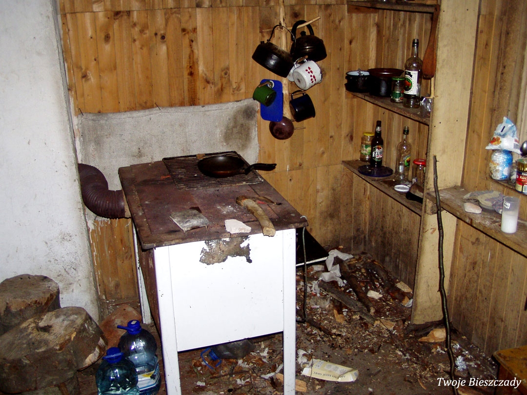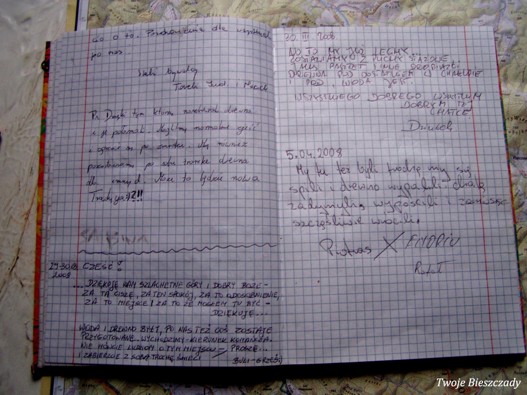 Mików, chatka w pobliżu Mikowa pod Chryszczatą. Dawniej w każdej z wielu bieszczadzkich chatek ukrytych w lesie, był praktykowany zwyczaj wpisywania się do zeszytu, 2008 (foto: P. Szechyński)