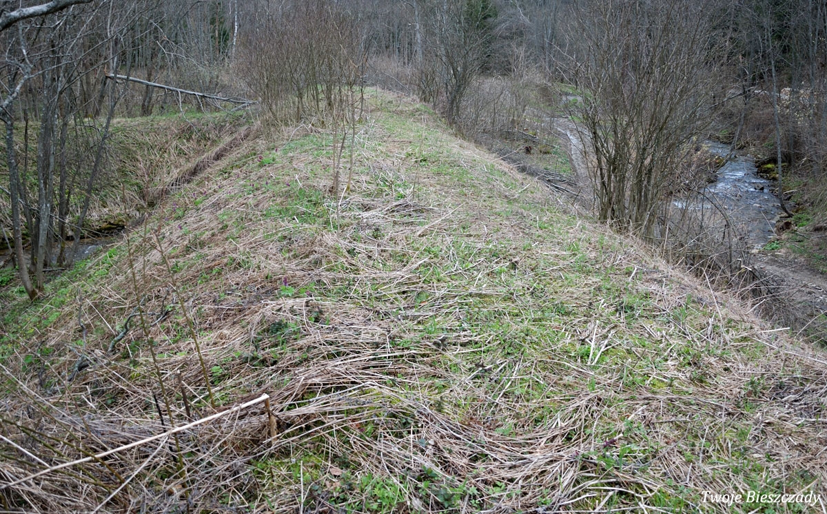 Mików, nasyp kolejki na nieczynnym odcinku na górny skład, 2010 (foto: P. Szechyński)
