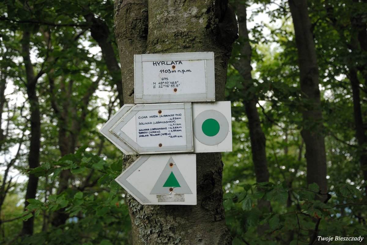 Szlak niebieski na Hyrlatą od strony Żubraczego, widok na Wysoki Dział (foto: P. Szechyński) Hyrlata, Wielka Polana (foto: P. Szechyński) Hyrlata, Wielka Polana (foto: P. Szechyński) Hyrlata, Wielka Polana, widok na Łopiennik (foto: P. Szechyński) Szymowa Hyrlata, szczyt (foto: P. Szechyński) Hyrlata, trójnóg geodezyjny na szczycie (foto: P. Szechyński) Hyrlata, znaczki szlaku GPS z Cichej Wody oraz niebieskiego PTTK (foto: P. Szechyński) Hyrlata, widok w kierunku południowo-zachodnim (foto: P. Szechyński) Hyrlata, zejście niebieskim szlakiem do drogi Solinka - Żubracze (foto: P. Szechyński) Hyrlata, wierchołek Berdo, znaczki GPS od strony Żubraczego (foto: P. Szechyński) Hyrlata (foto: P. Szechyński) Hyrlata, las na wierchołku (foto: P. Szechyński) Hyrlata, krzyż ustawiony w roku 2011 (foto: P. Szechyński) Hyrlata, tabliczka na krzyżu (foto: P. Szechyński) Hyrlata, trójnóg geodezyjny na szczycie, 2012 (foto: P. Szechyński) Hyrlata, Wielka Polana (foto: P. Szechyński) Hyrlata, widok na pasmo graniczne (foto: P. Szechyński) Hyrlata, widok z Wielkiej Polany na Łopiennik, 2012 (foto: P. Szechyński) Hyrlata, zejście do Roztok Górnych, 2012 (foto: P. Szechyński) Hyrlata, las na zboczach (foto: P. Szechyński) Matragona, początek szlaku niebieskiego z Żubraczego na Hyrlatą (foto: P. Szechyński) Matragona z podejścia na Hyrlatą, 2016 (foto: P. Szechyński) Matragona z podejścia na Hyrlatą, 2012 (foto: P. Szechyński) Chryszczata i Przełęcz ŻebrakJasło i Okrąglik