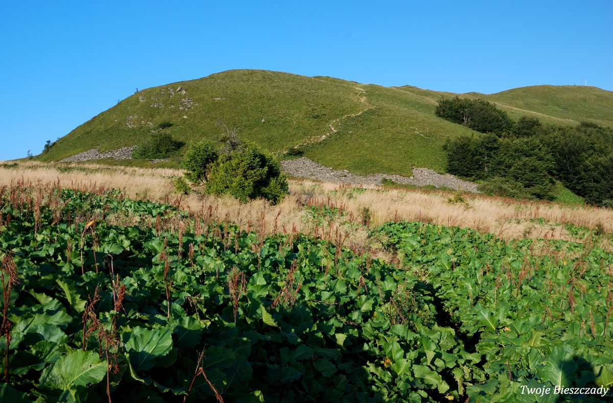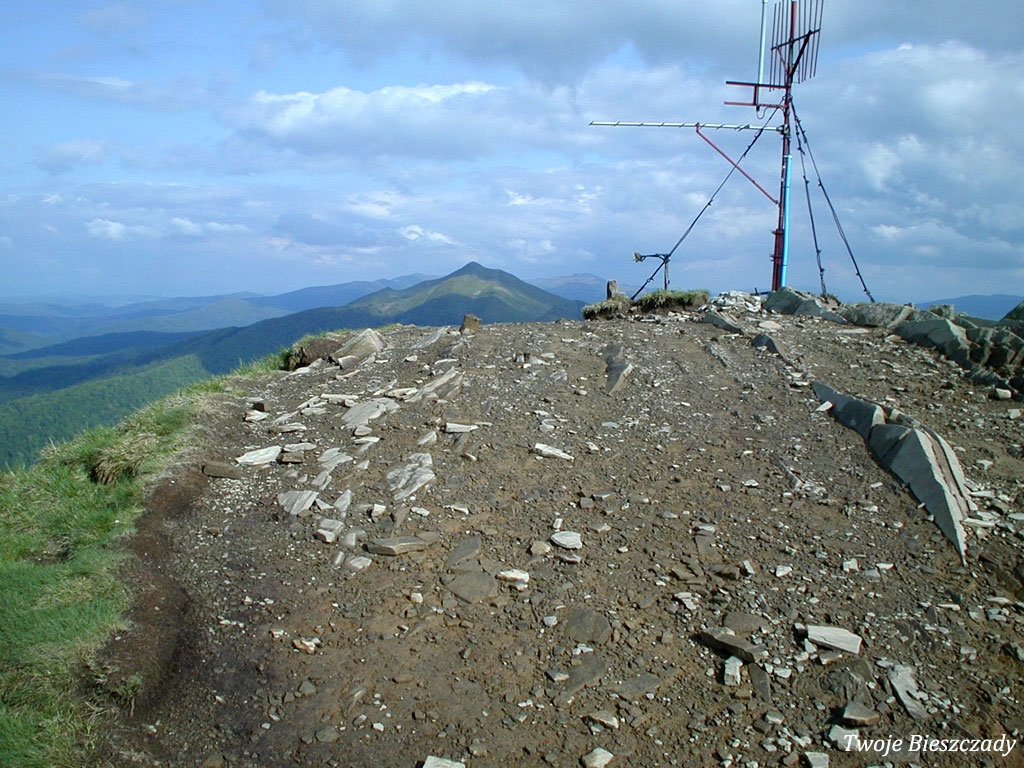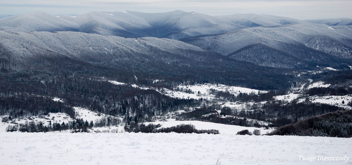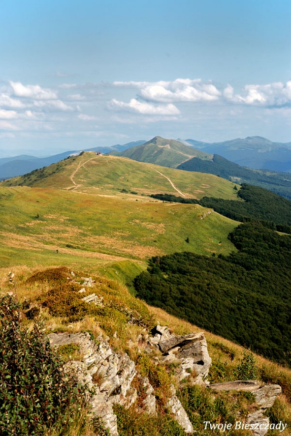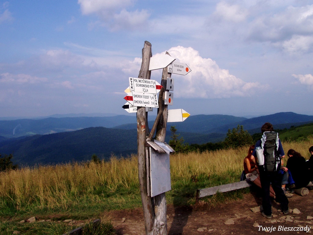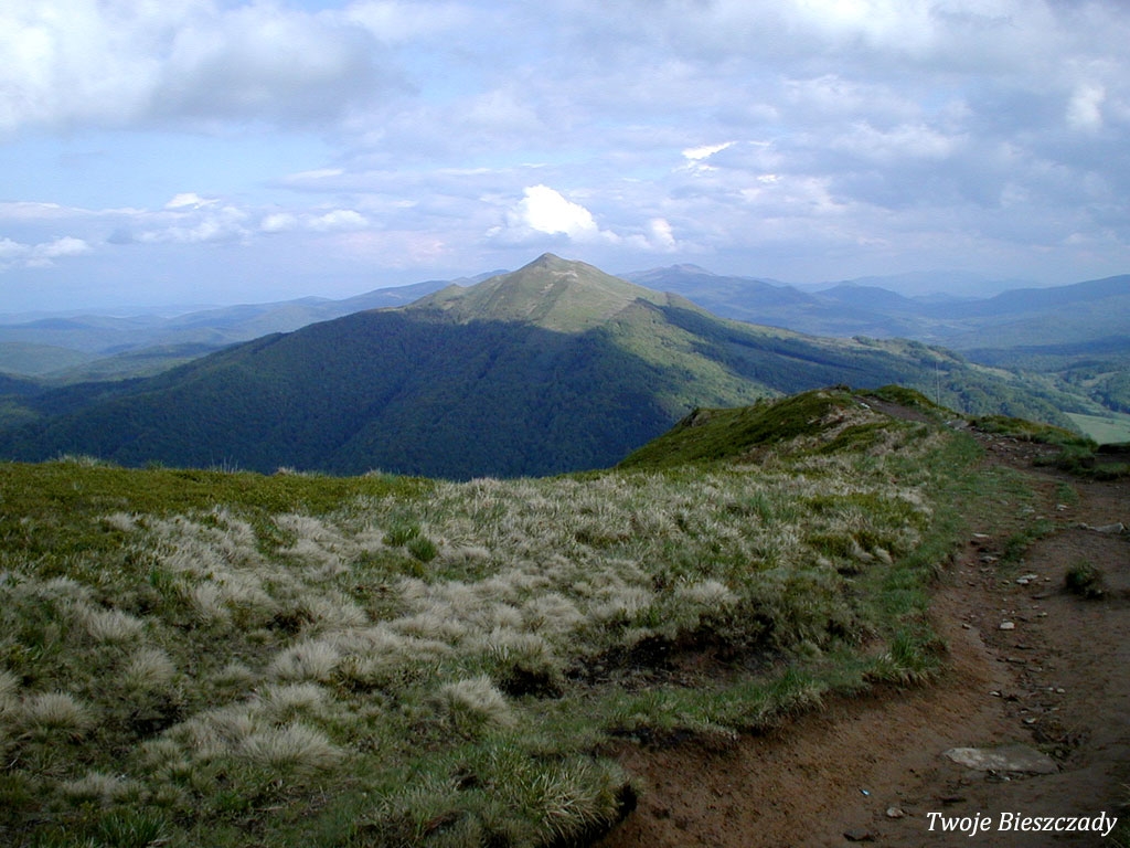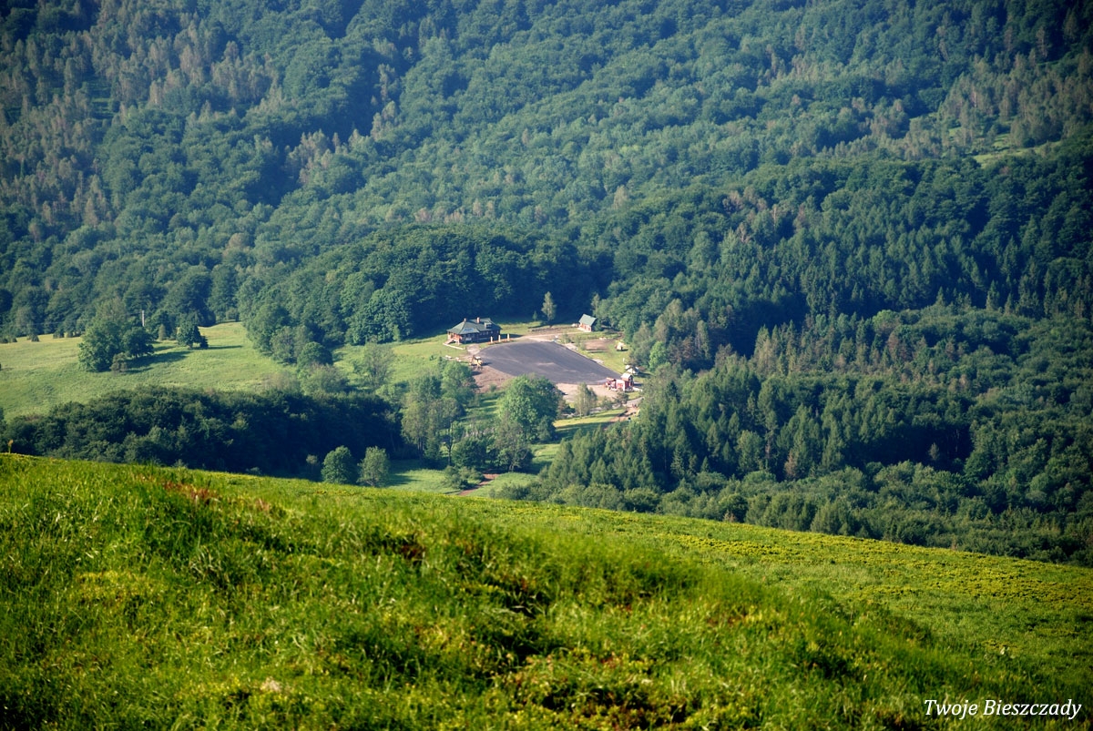 Widok spod Przełęczy Orłowicza na Suche Rzeki. Na polance z prawej nieistniejąca baza harcerska Ostoja, 2005 (foto: P. Szechyński)