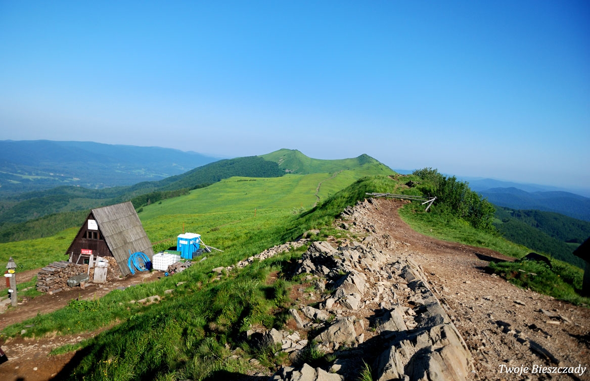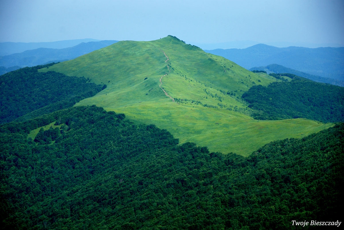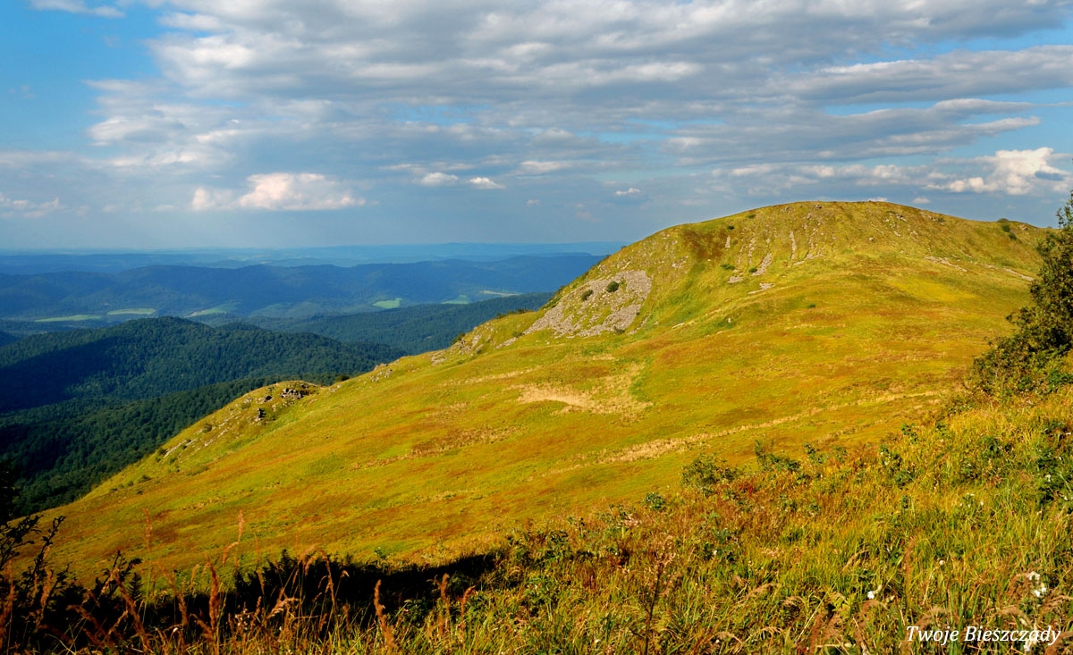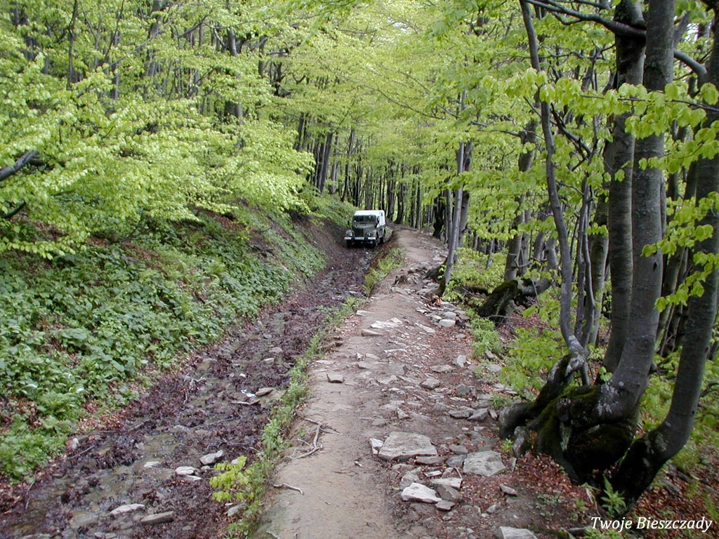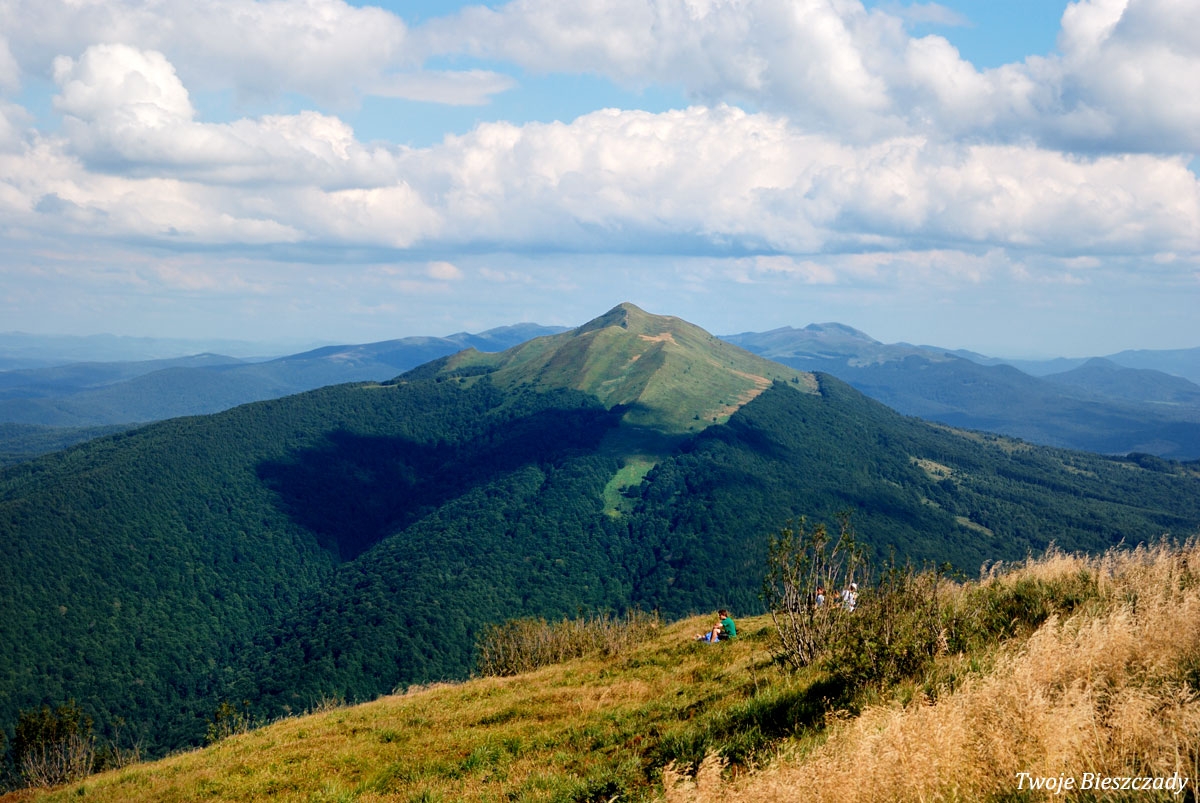 Widok spod Przełęczy Orłowicza na Suche Rzeki. Na polance z prawej nieistniejąca baza harcerska Ostoja, 2005 (foto: P. Szechyński)