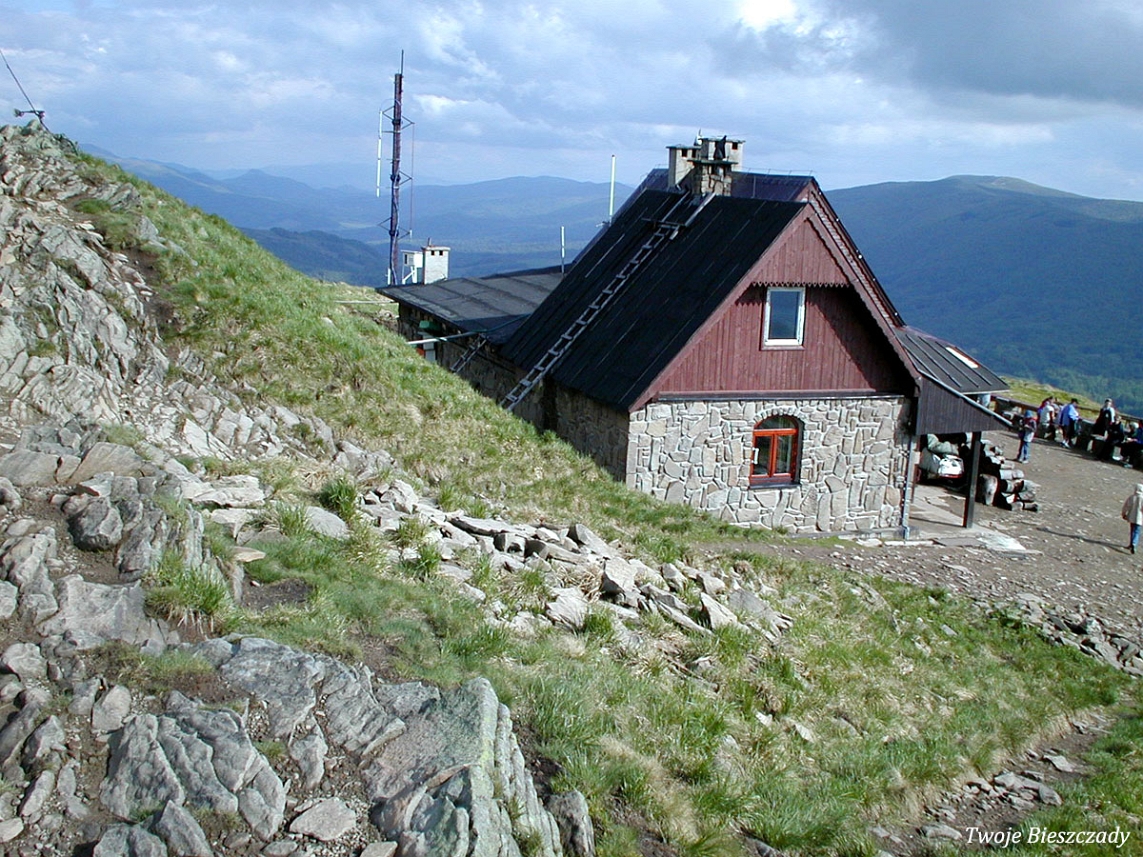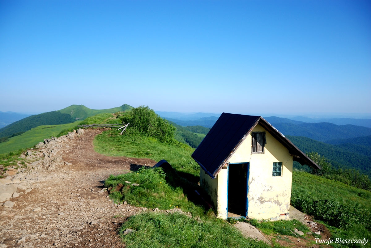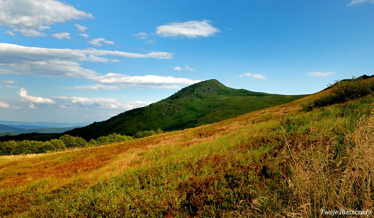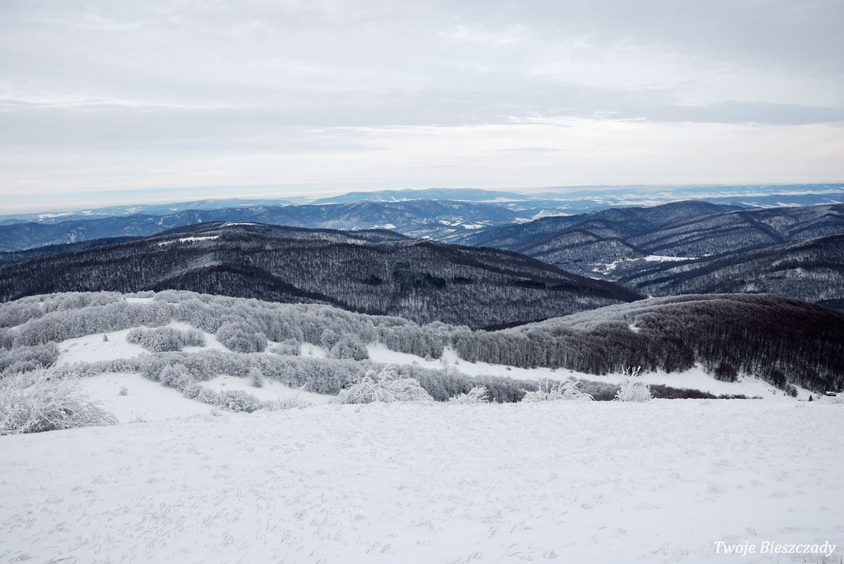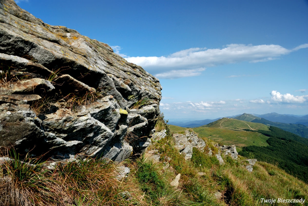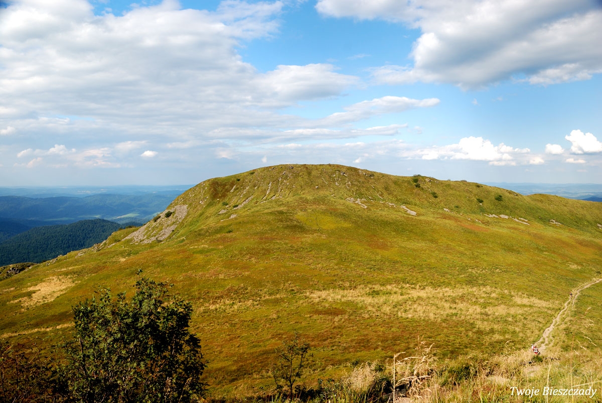 Widok spod Przełęczy Orłowicza na Suche Rzeki. Na polance z prawej nieistniejąca baza harcerska Ostoja, 2005 (foto: P. Szechyński)