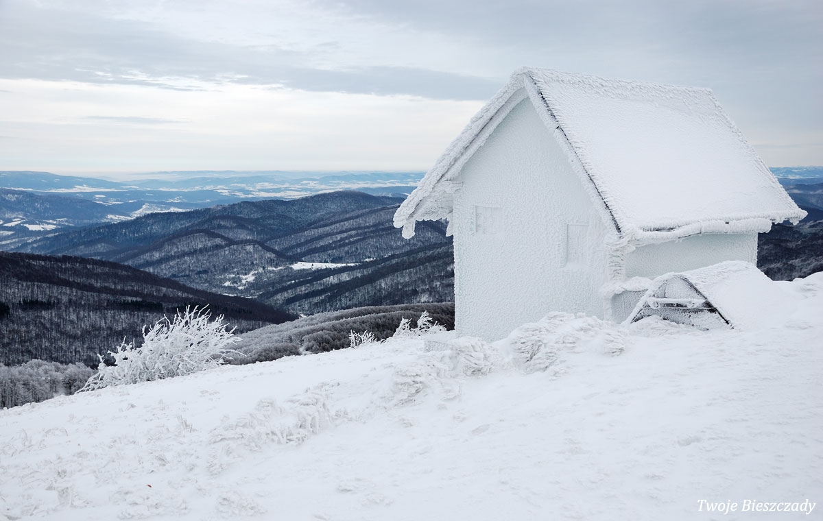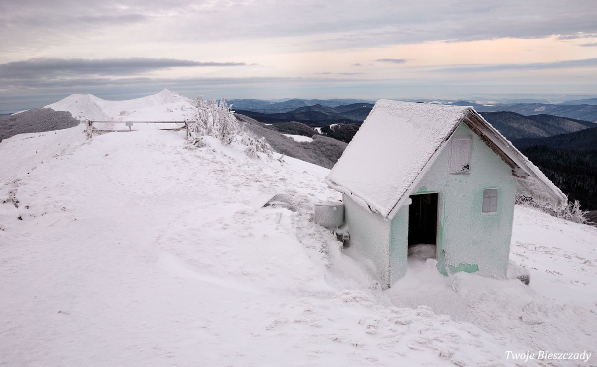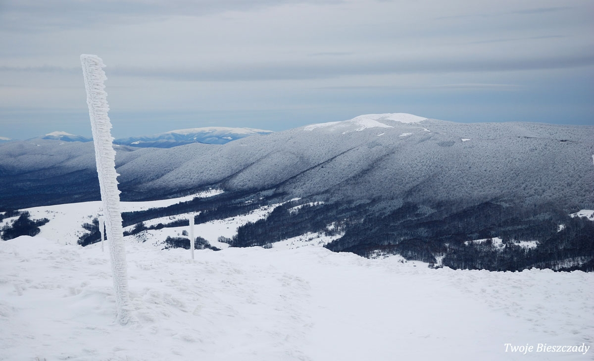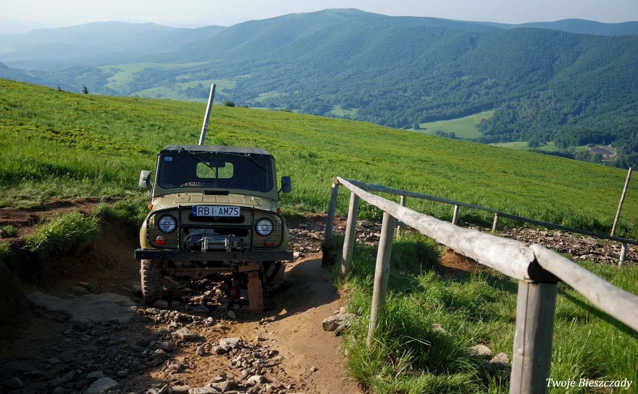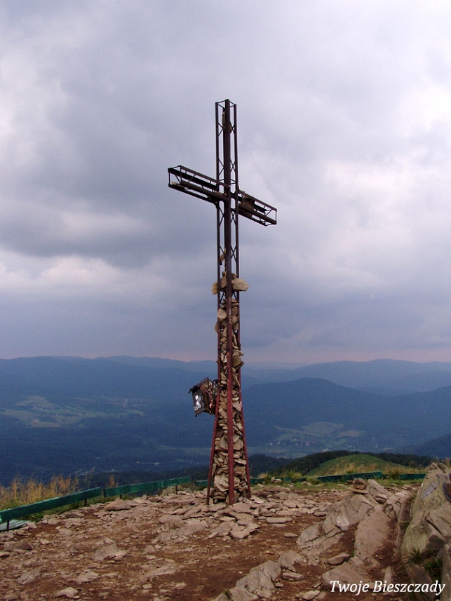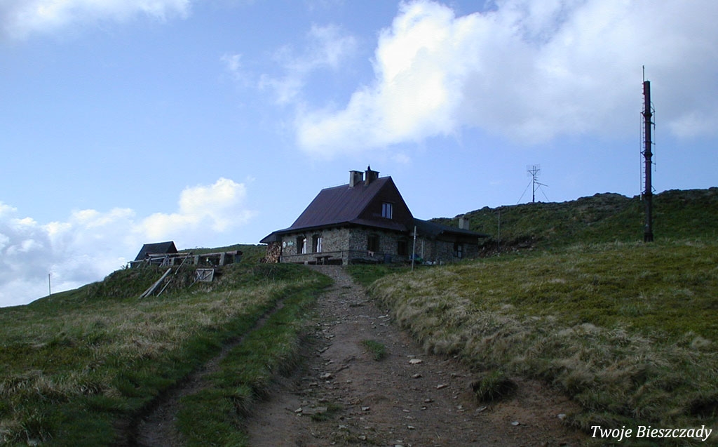 Widok spod Przełęczy Orłowicza na Suche Rzeki. Na polance z prawej nieistniejąca baza harcerska Ostoja, 2005 (foto: P. Szechyński)