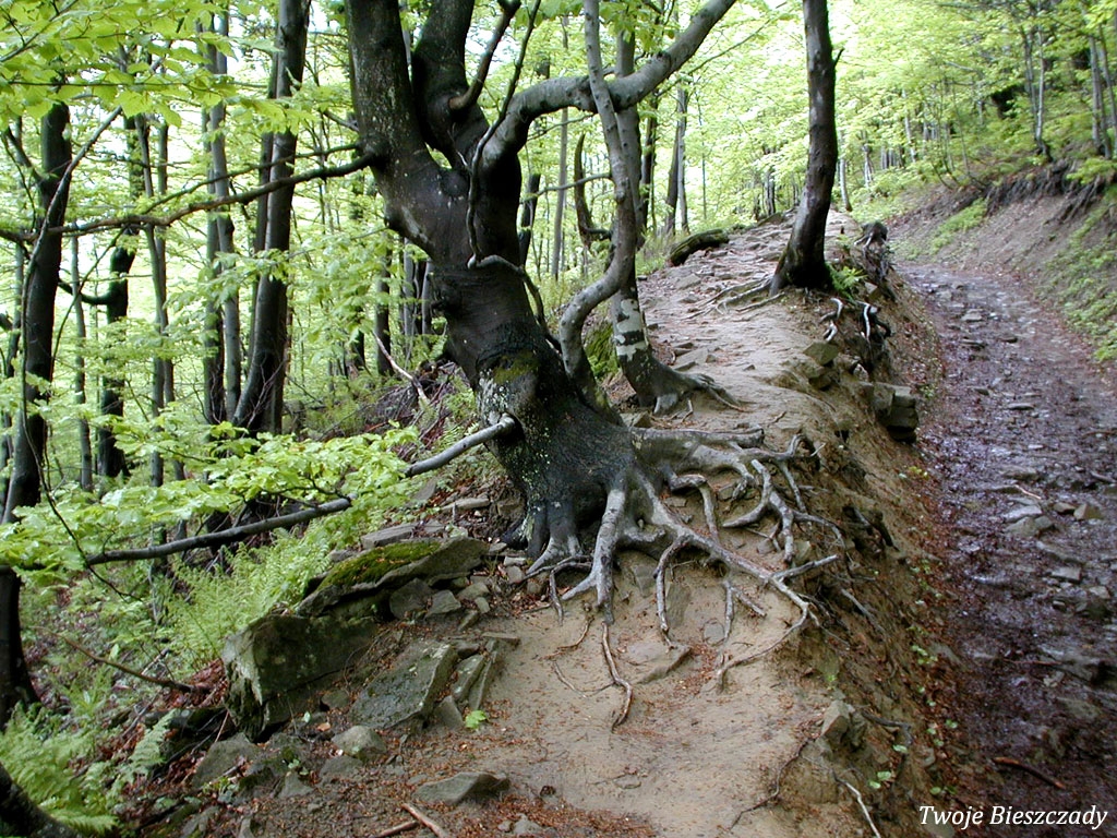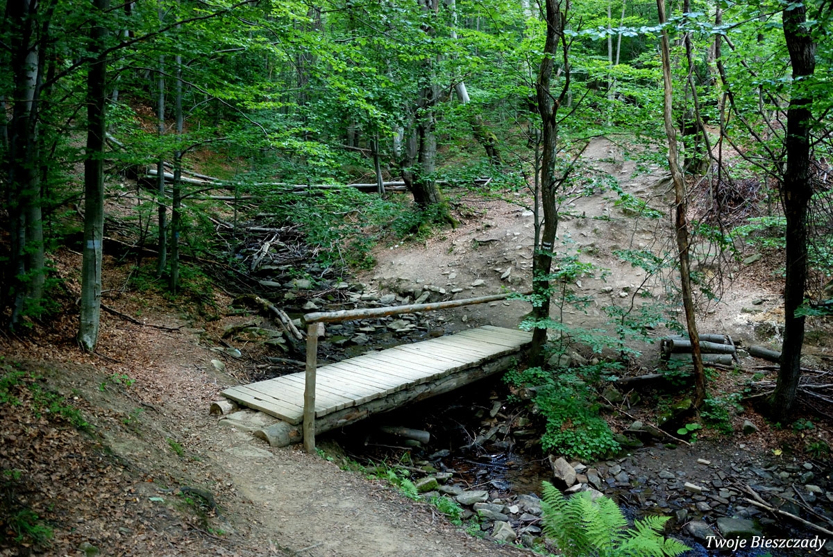 Połonina Wetlińska, szlak czarny od strony campingu Górna Wetlinka. Kładka na potoku Pataraczakowski (foto: P. Szechyński)