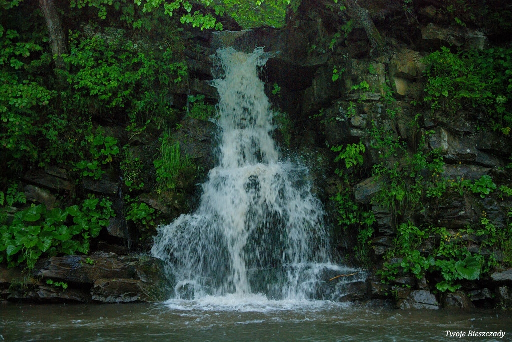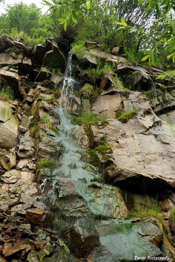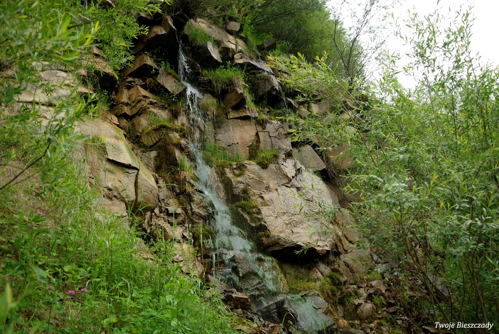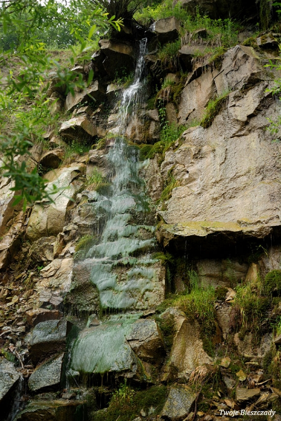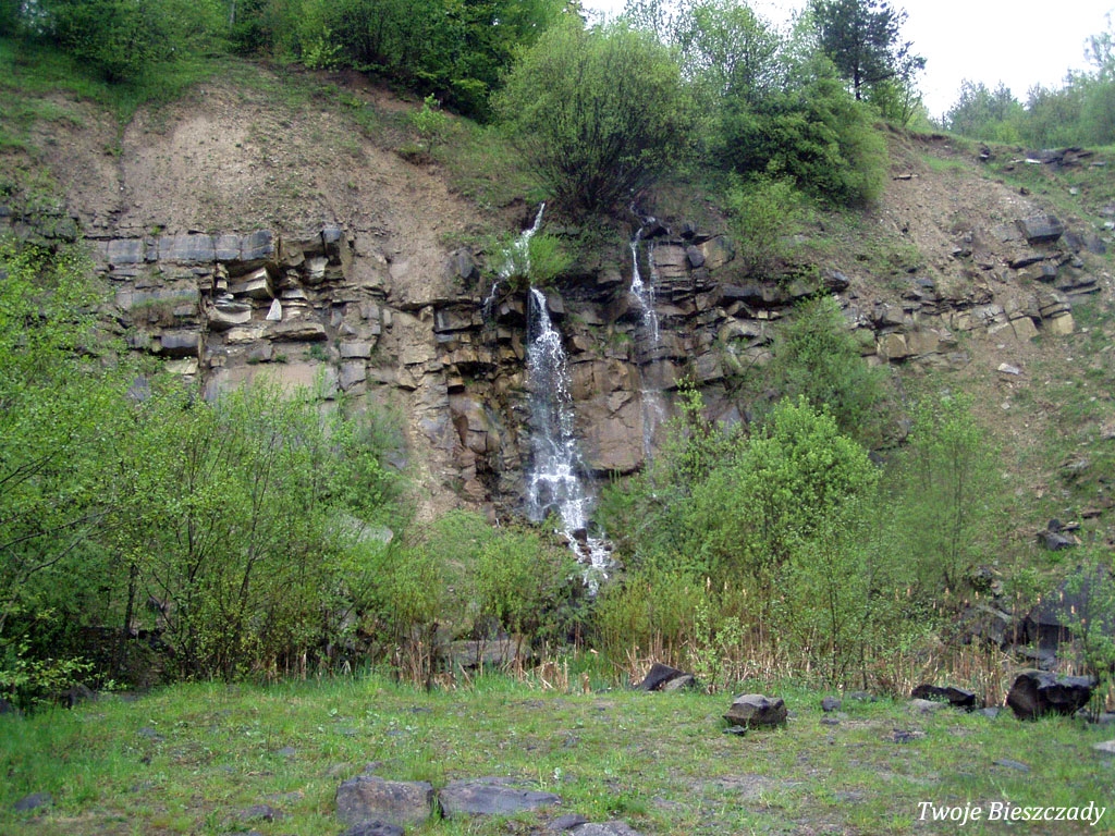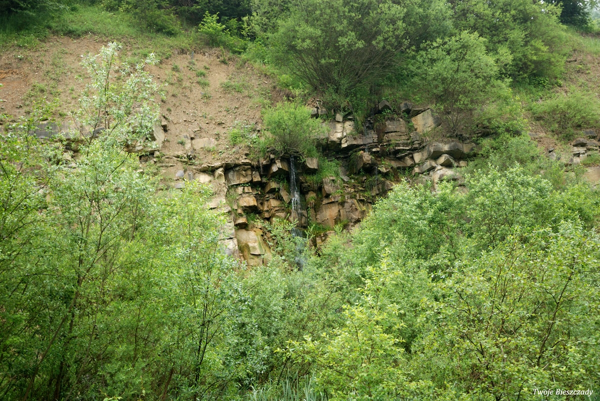 Komańcza, nieistniejący obecnie wodospad w nieczynnym wówczas kamieniołomie, 2010 (foto: P. Szechyński)