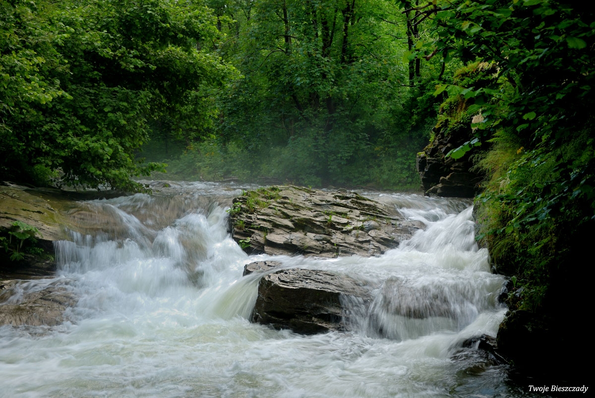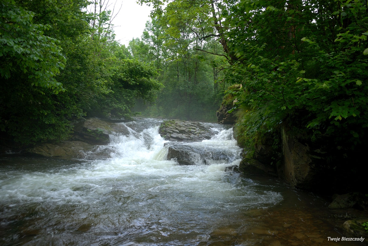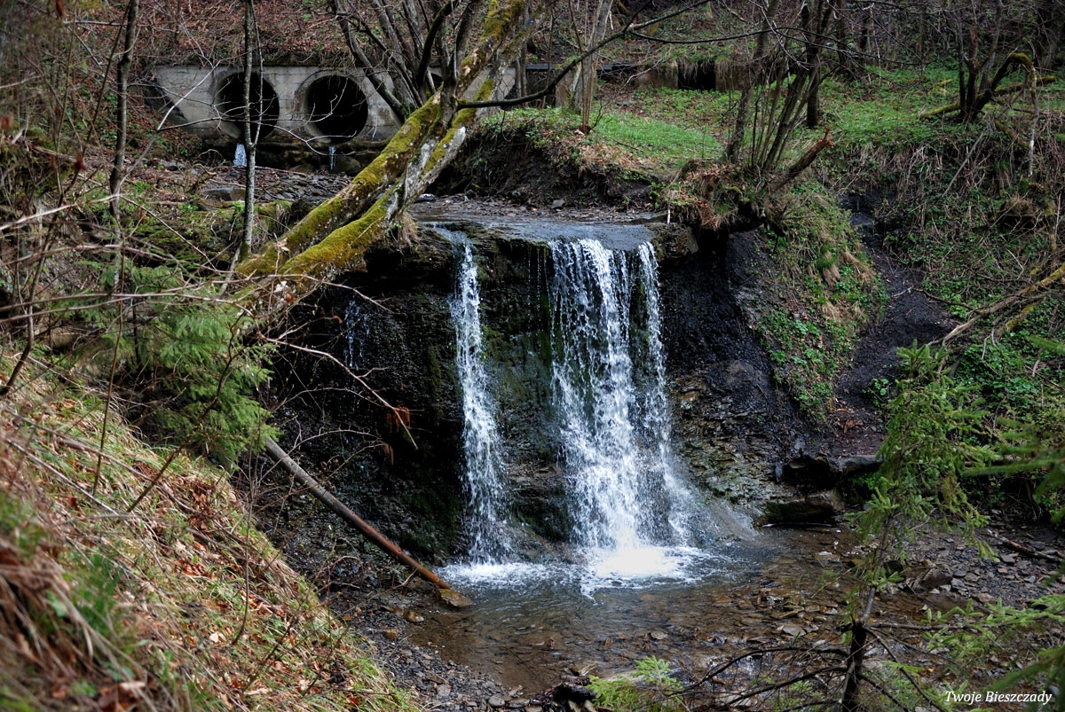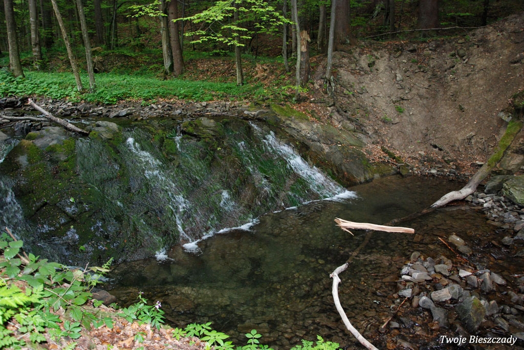 Komańcza, nieistniejący obecnie wodospad w nieczynnym wówczas kamieniołomie, 2010 (foto: P. Szechyński)